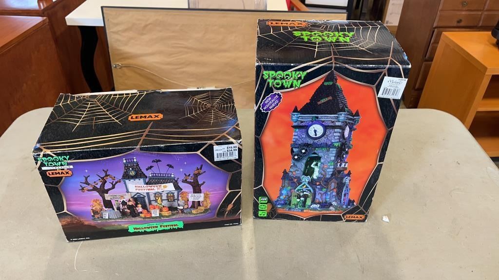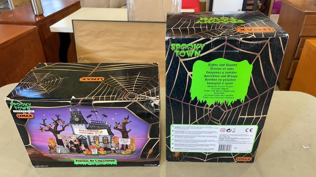 LEMAX SPOOKY TOWN HAUNTED CLOCK TOWER AND HALLOWEEN FESTIVAL DISPLAYS