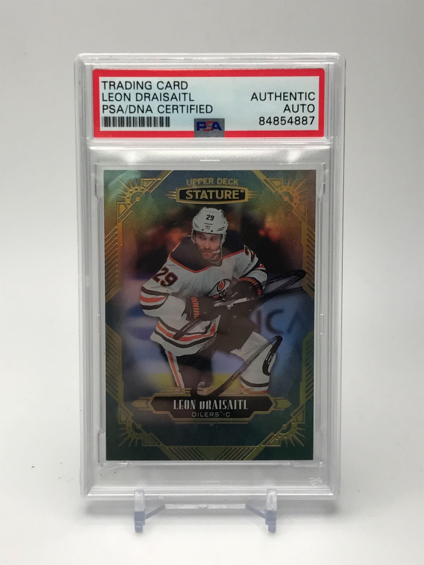 LEON DRAISAITL SIGNED UPPER DECK STATURE TRADING CARD (PSA AUTHENTIC)