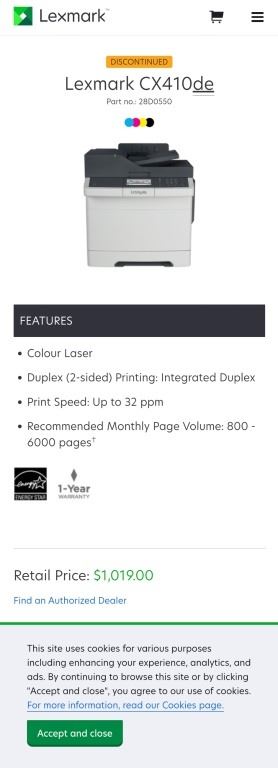 LEXMARK CX410 PRINTER COPIER POWERS UP NEEDS TONER RETAIL $1019