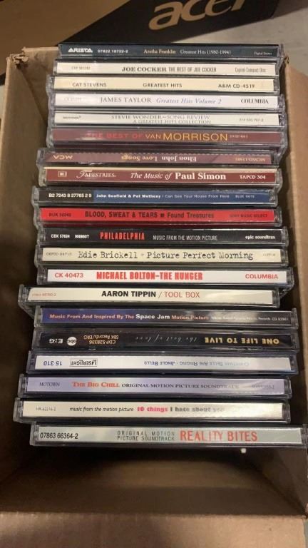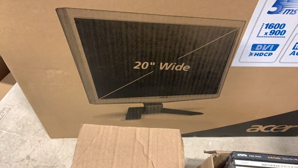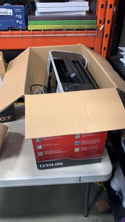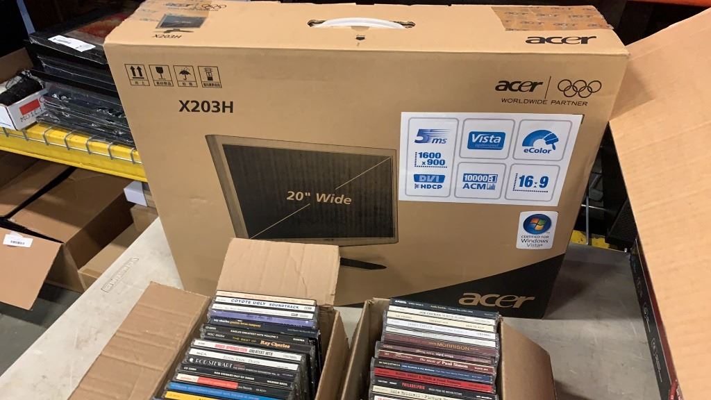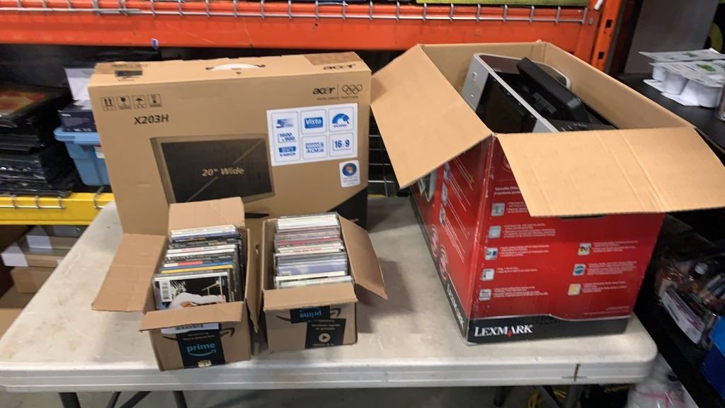 LEXMARK PRINTER, ACER MONITOR AND 2 BOXES OF CDS