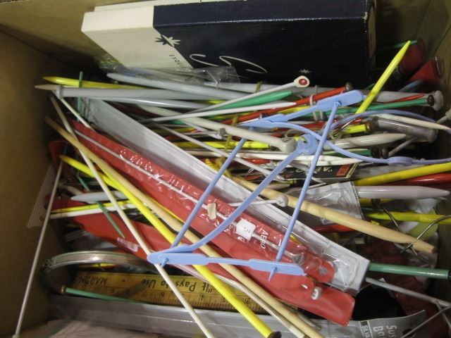 LG. BOX OF KNITTING NEEDLES, ETC.