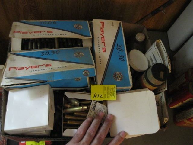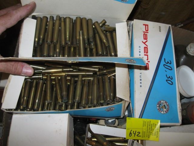 LG. BOX OF MISC. SHELL BRASS, ETC.