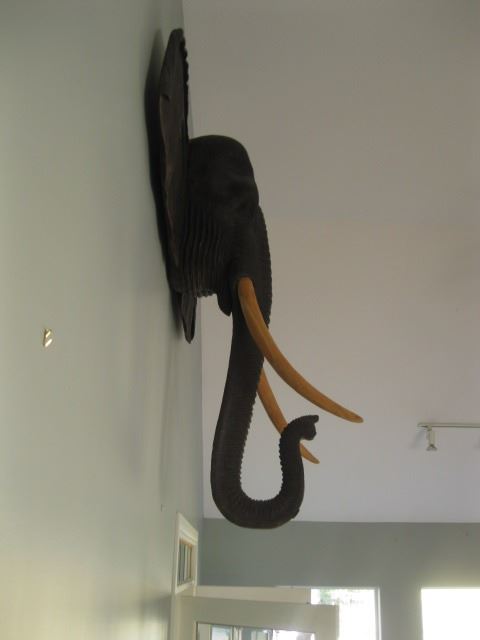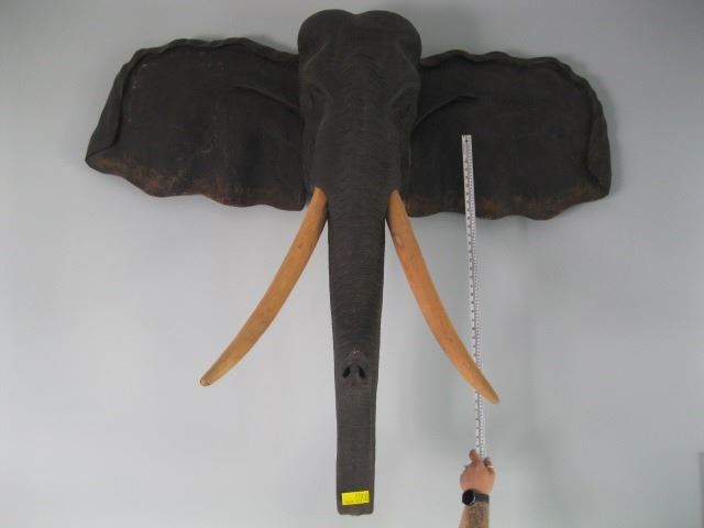 LG. CARVED WOODEN WALL MOUNT ELEPHANT HEAD