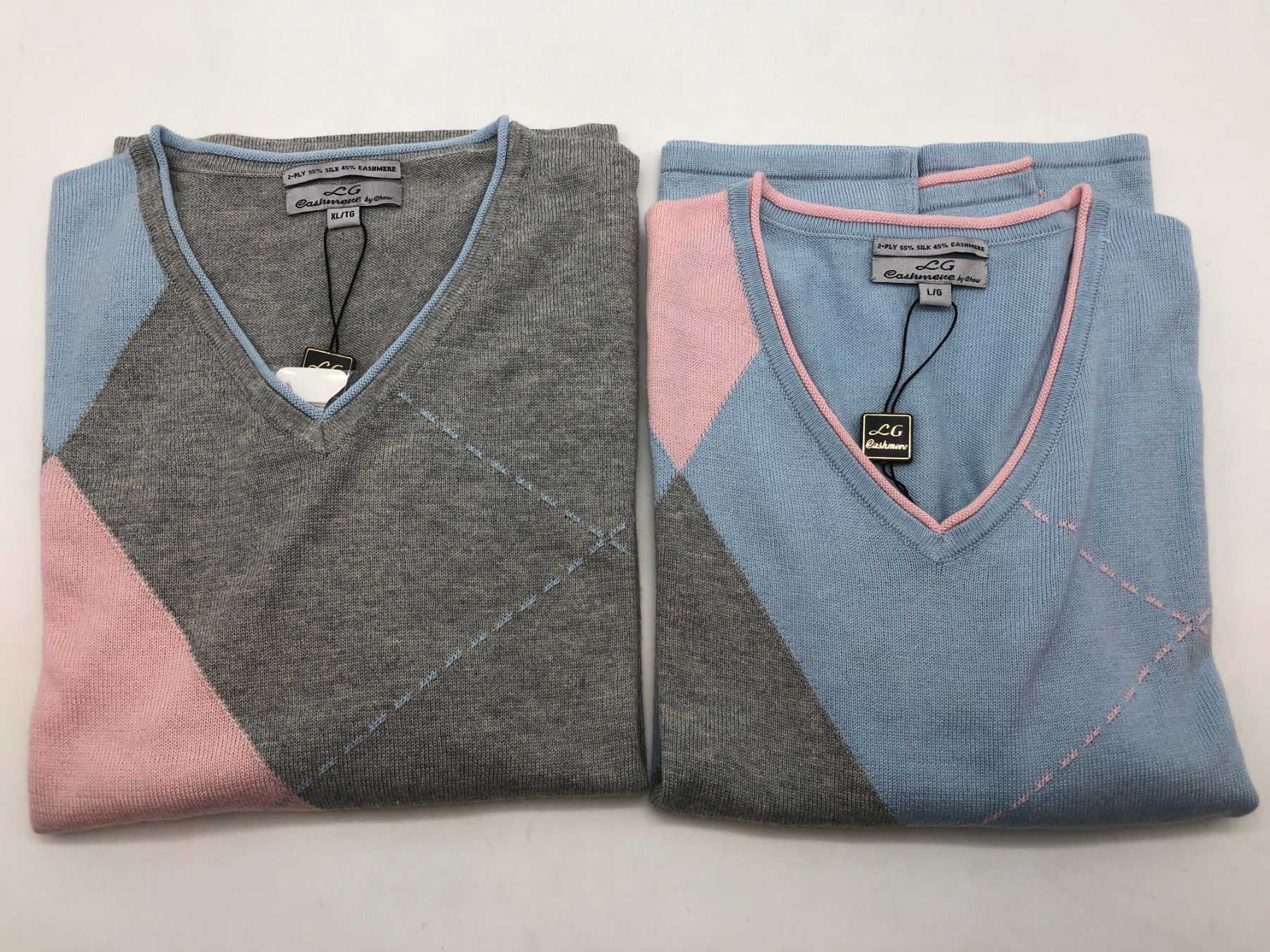 "LG Cashmere by Chow" - Group of 2 55% Silk /45% Cashmere V-neck women's sweater - Sizes: XL & L - Brand New w/tag