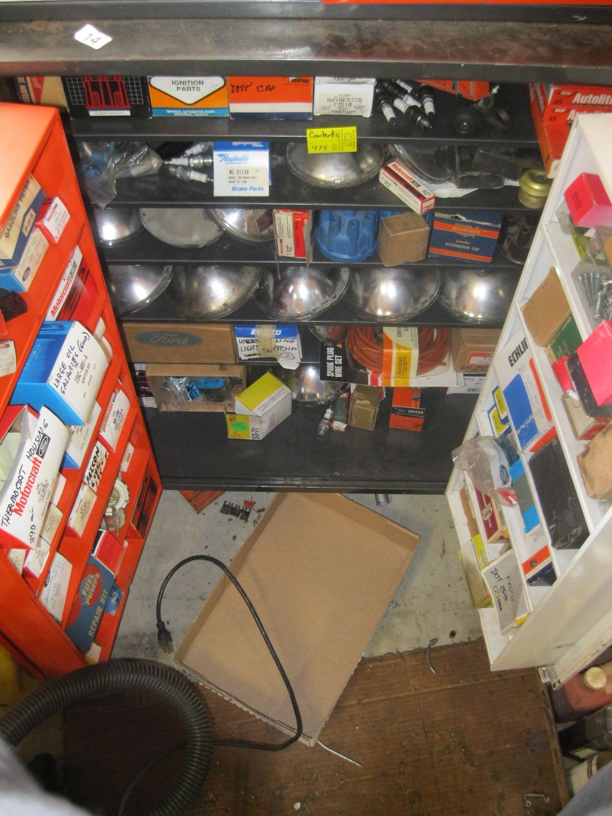 LG. LOT OF ASST. ELECTRICAL CONTENTS IN CABINET: SPARKPLUGS, LIGHTS, SCREWS, ETC.