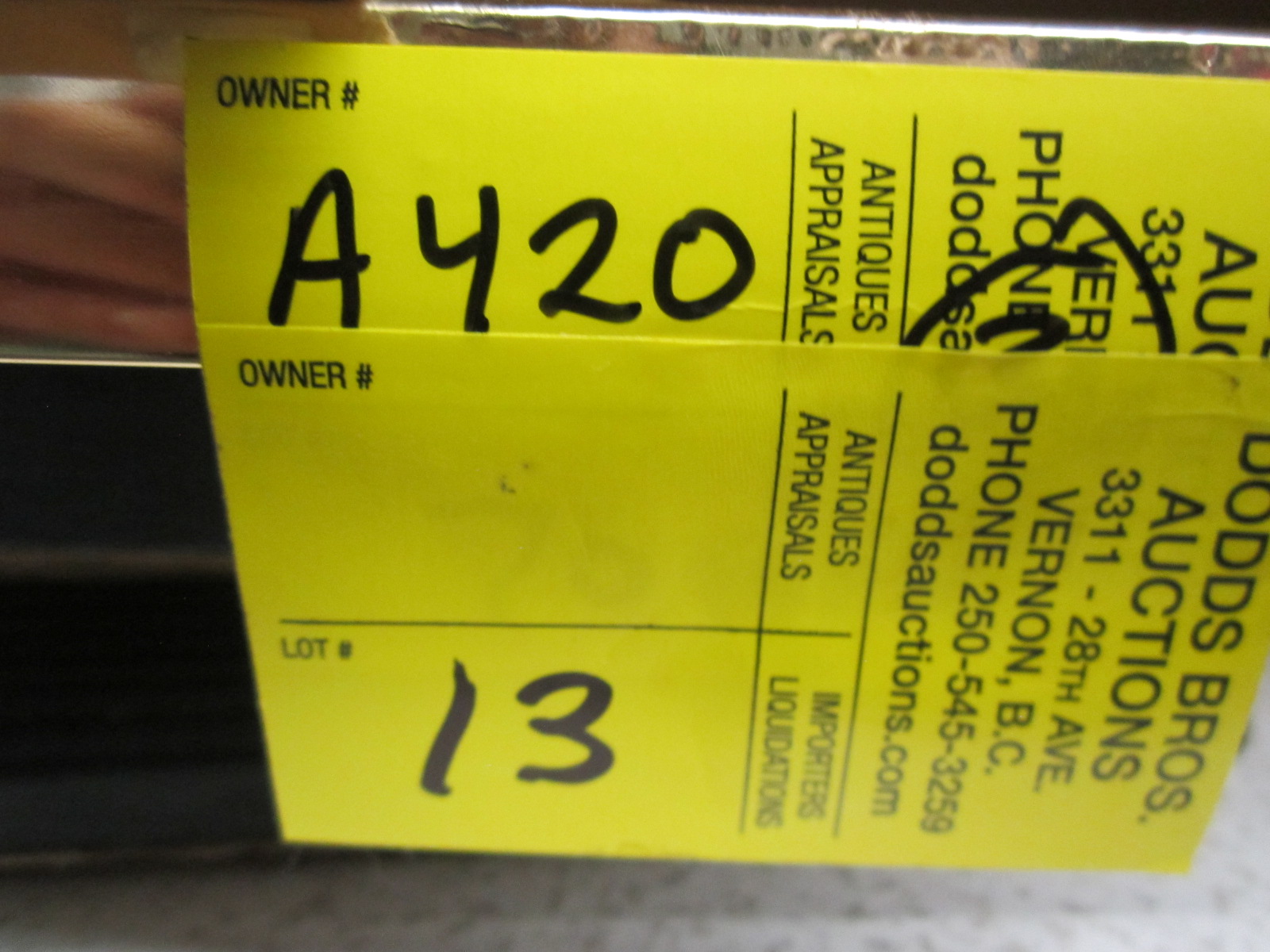 Attendance at the auction preview, or removal of purchased lots by purchaser/bidders and guests is done at their sole risk. Dodds Auction assumes no risk or liability, statutory, common law or otherwise whatsoever for the safety of those attending at the auction premises.