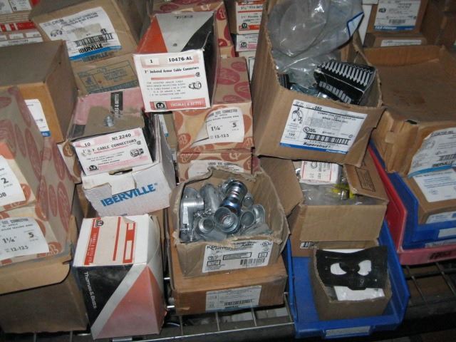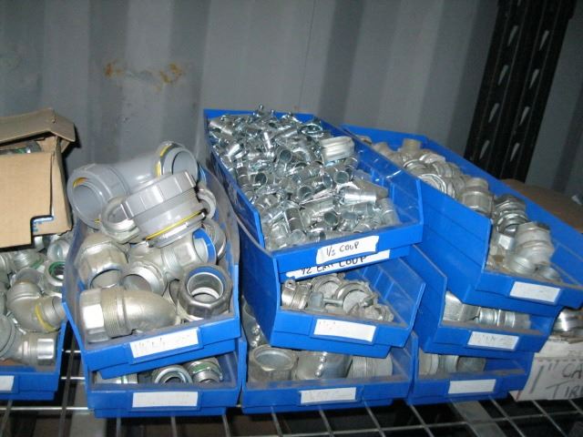 LG. LOT OF ELECTRICAL FITTINGS ON SHELF UNIT