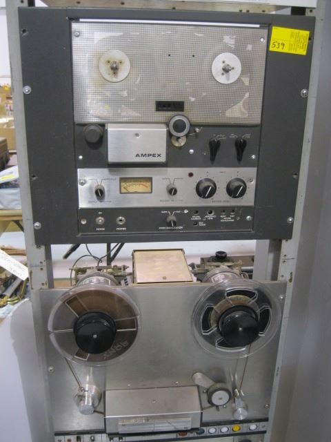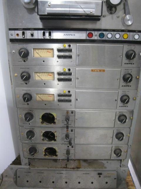 LG. METAL RACK WITH ASST. COMPONENTS, INCLUDING 2 AMPEX REEL TO REELS, 7 AMPEX COMPONENTS, 2 INNOVON
