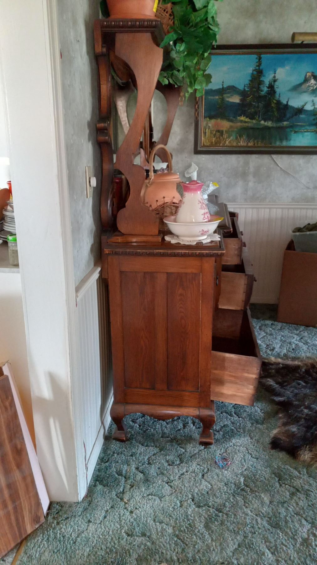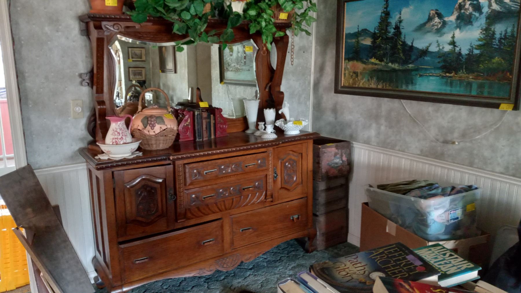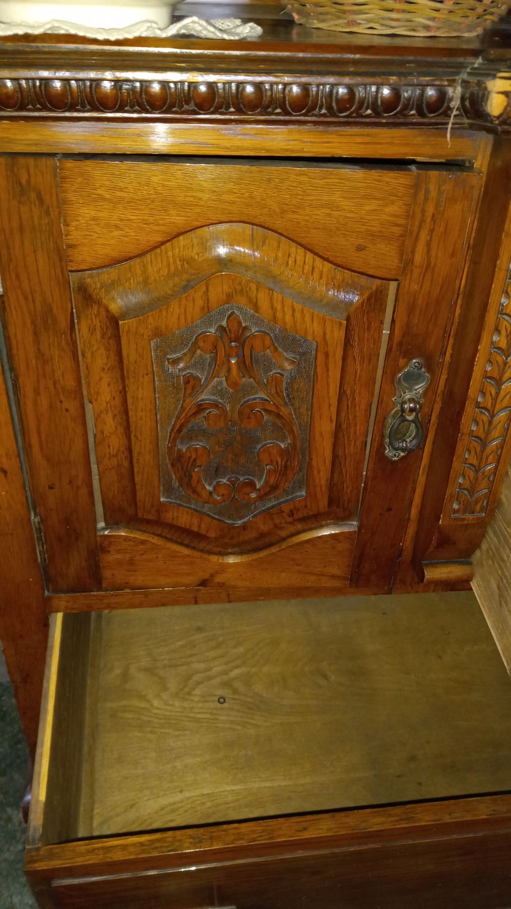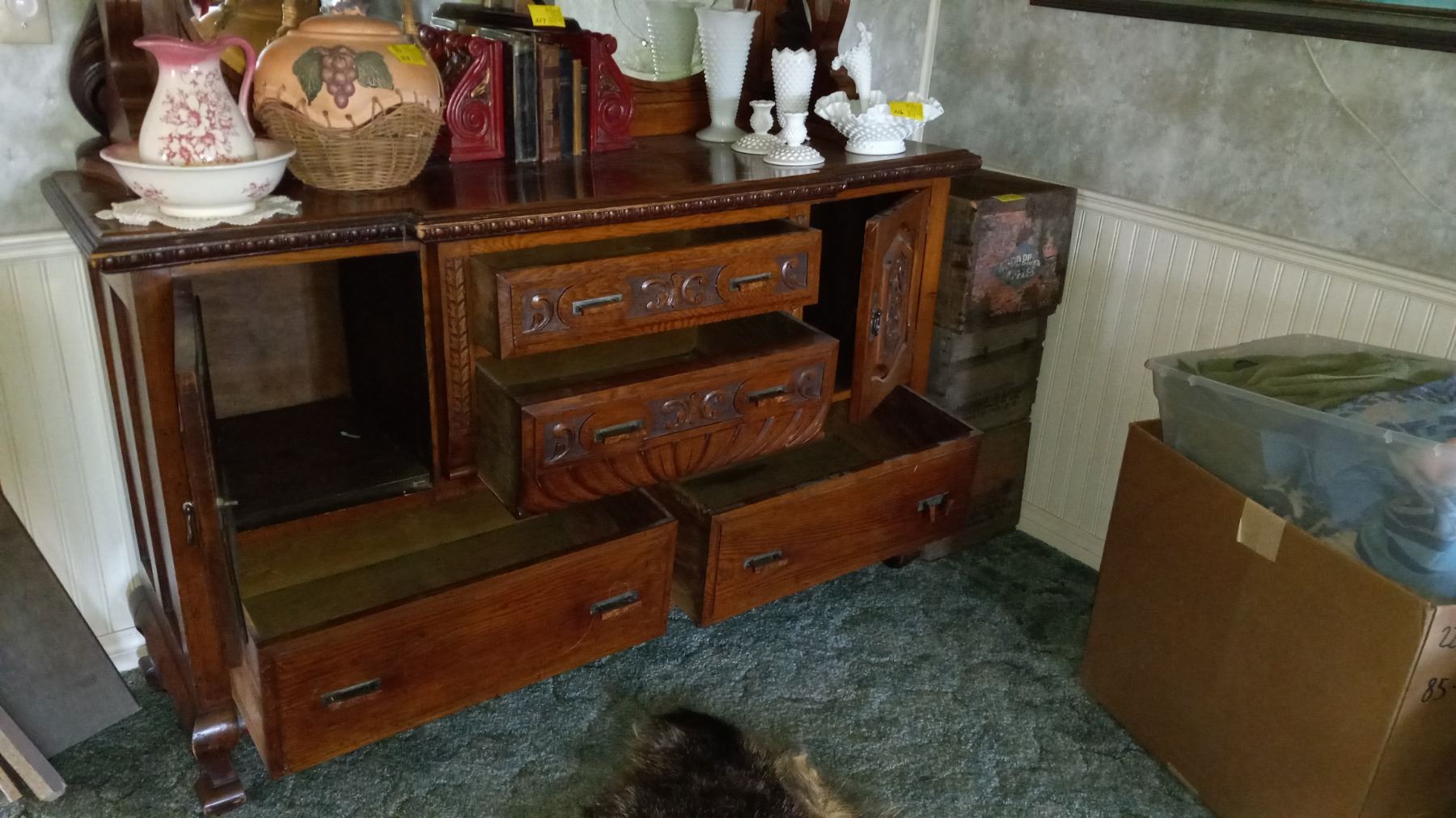 LG MIRROR BACK ANTIQUE CARVED FRONT SIDEBOARD CABINET