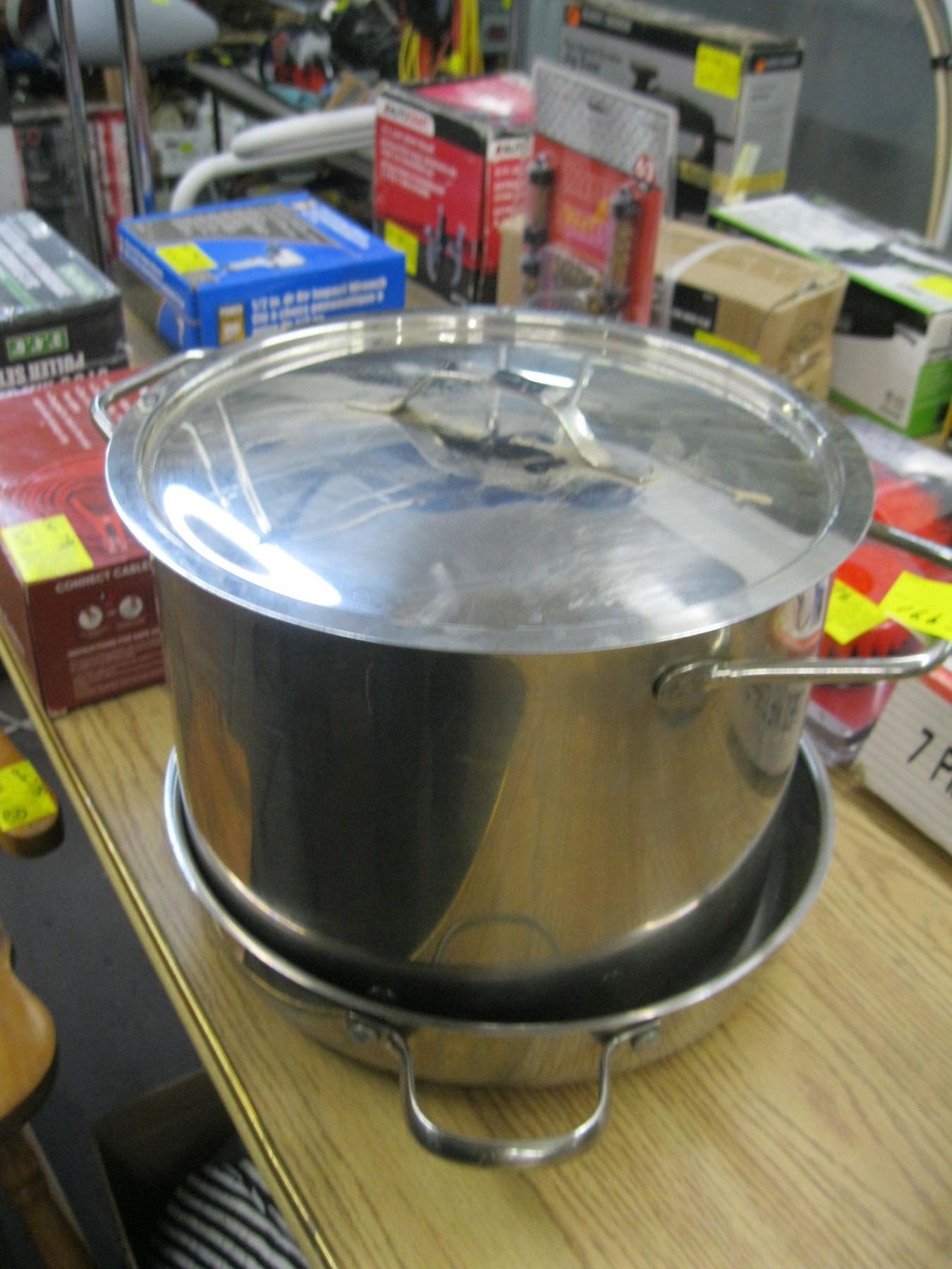 LG. STAINLESS STEEL POT W/LID & FRYING PAN