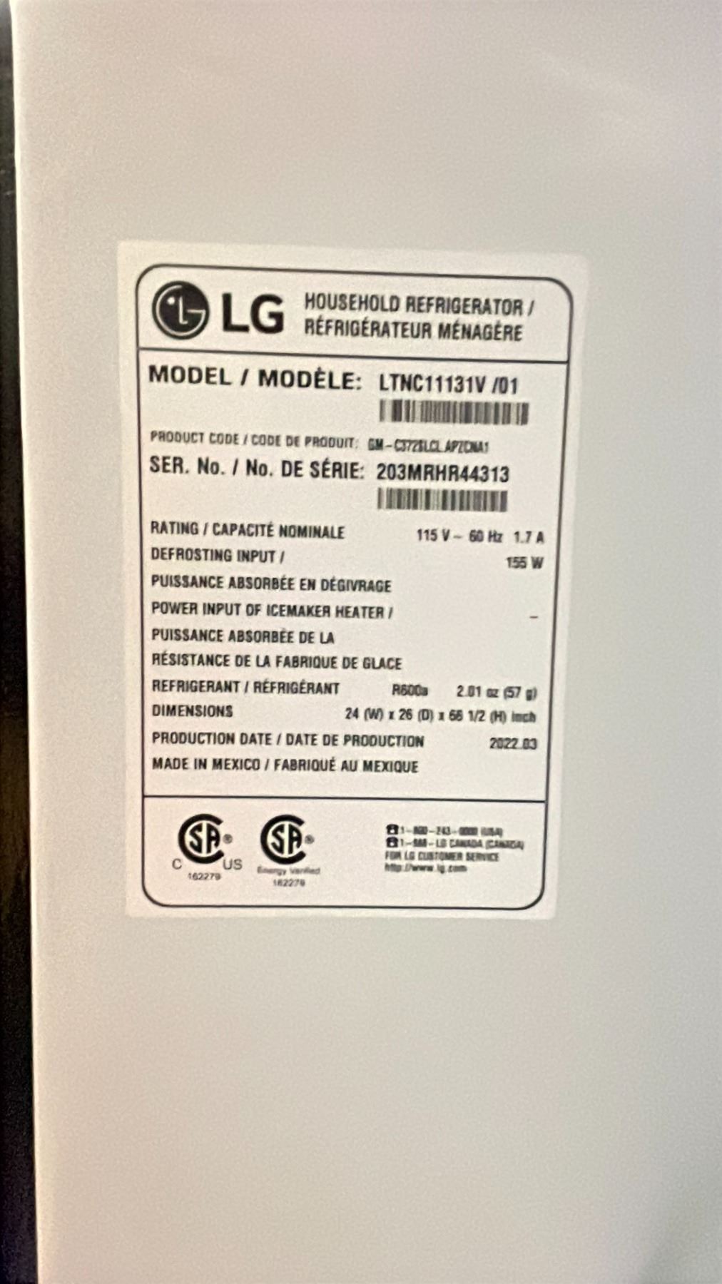 LG STAINLESS STEEL SWING OUT FRIDGE 23.5"W
