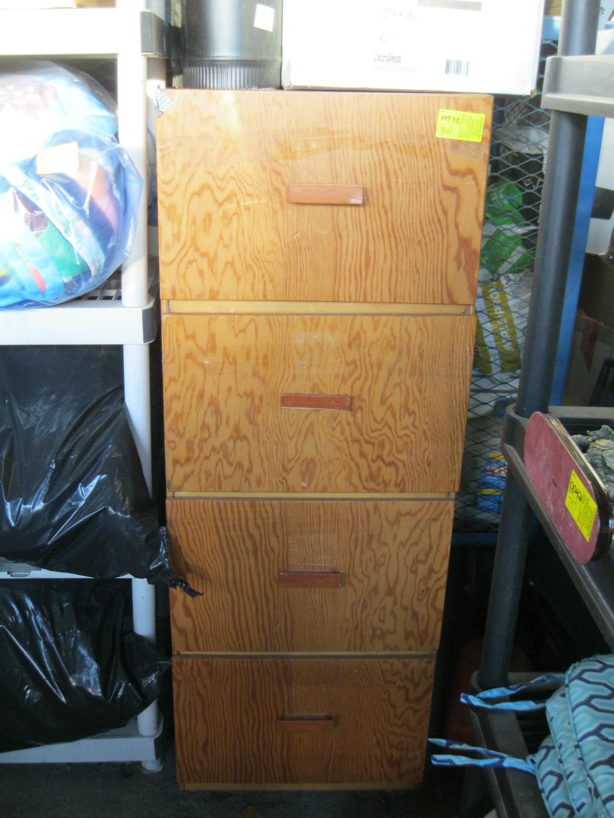 LG. WOODEN 4 DRAWER CABINET W/CONTENTS