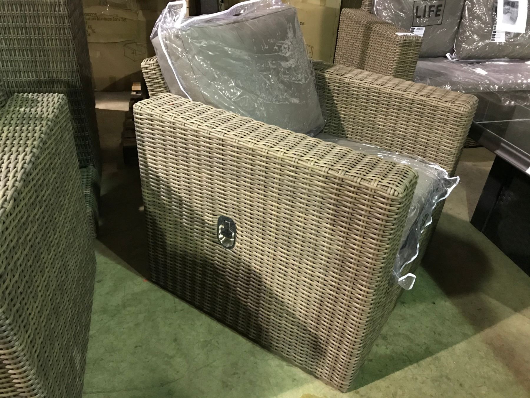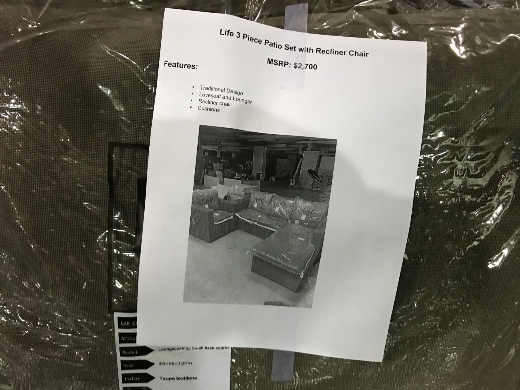 LIFE 3 PCS PLASTIC RATTAN OUTDOOR SECTIONAL SET WITH BROWN CUSHIONS INCLUDING: 3 SEAT SOFA LOUNGER & RECLINING ARM CHAIR SOFA - 79" X 66", CHAIR - 34" X 32"