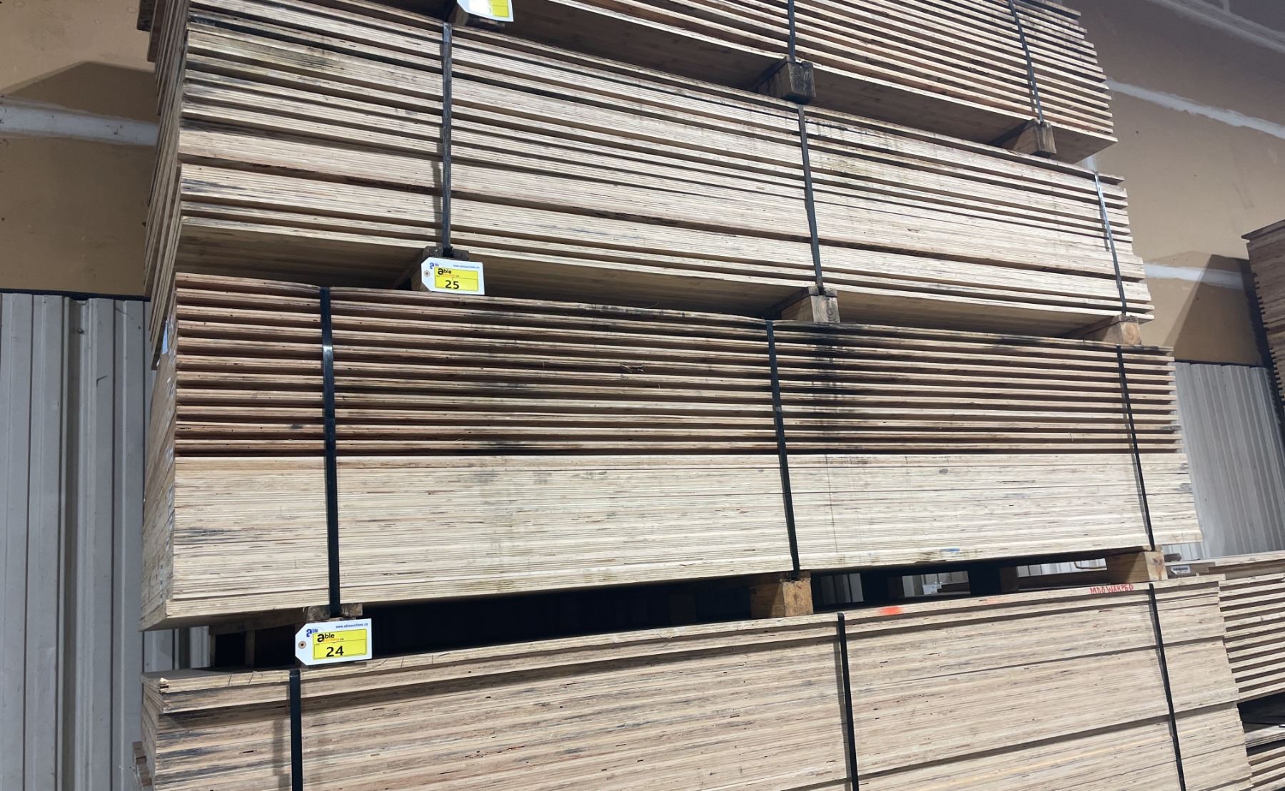 LIFT OF 10' X 4' DOUBLE SIDED BAMBOO VENEERED L-LOCK 1 1/4" THICK CONSTRUCTION GRADE PLYWOOD SHEETING APPROX 20 PCS