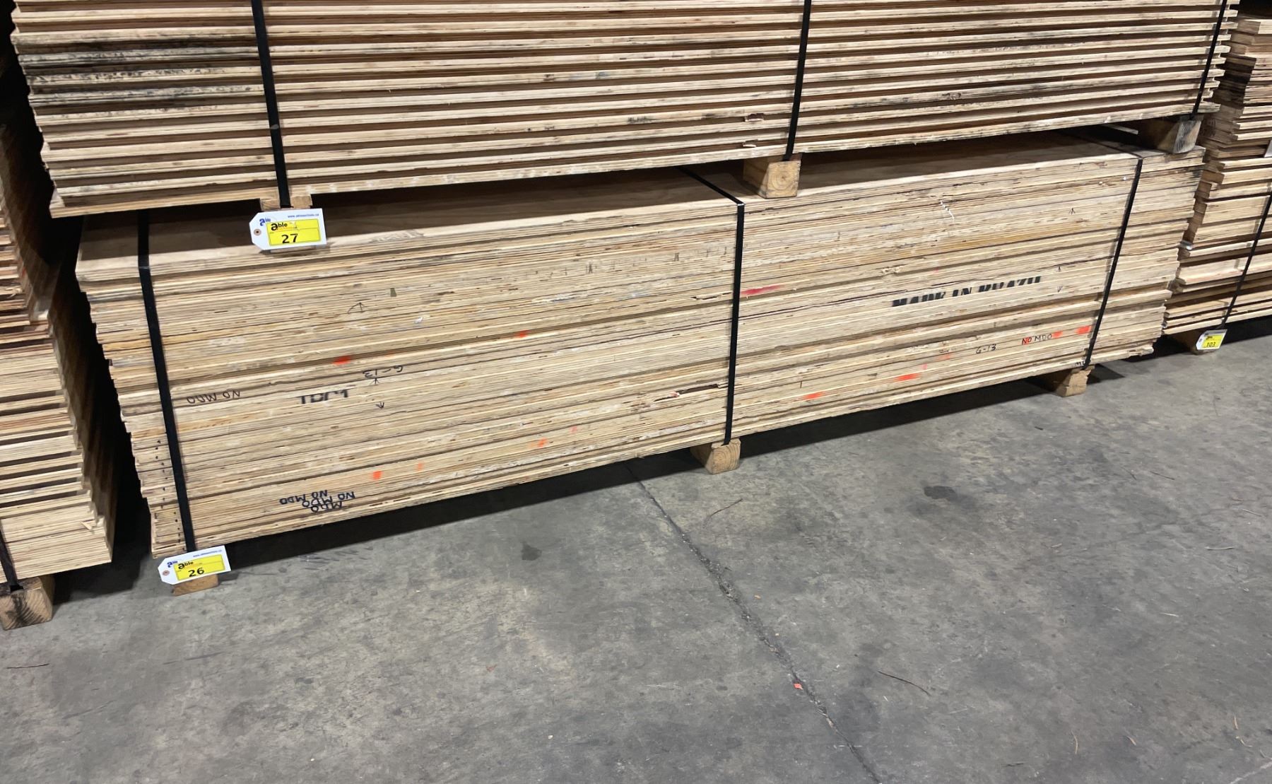 LIFT OF 10' X 4' DOUBLE SIDED BAMBOO VENEERED L-LOCK 1 1/4" THICK CONSTRUCTION GRADE PLYWOOD SHEETING APPROX 33 PCS