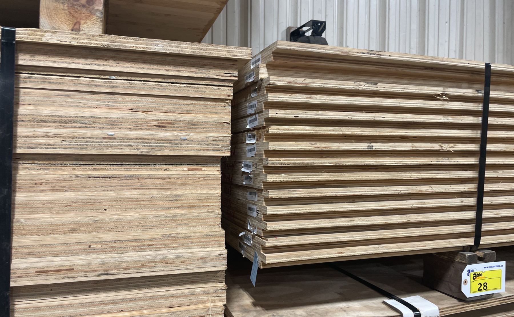 LIFT OF 10' X 4' DOUBLE SIDED BAMBOO VENEERED L-LOCK 1 1/4" THICK CONSTRUCTION GRADE PLYWOOD SHEETING APPROX 14 PCS