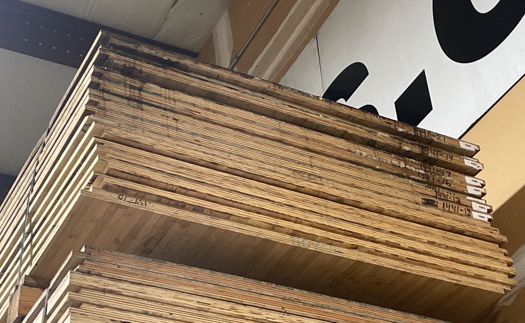 LIFT OF 10' X 4' DOUBLE SIDED BAMBOO VENEERED L-LOCK 1 1/4" THICK CONSTRUCTION GRADE PLYWOOD SHEETING APPROX 16 PCS