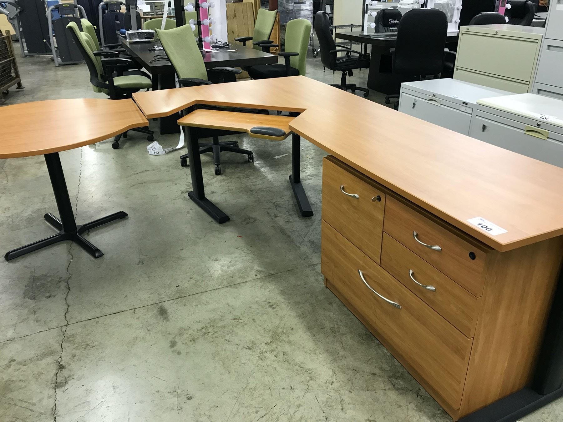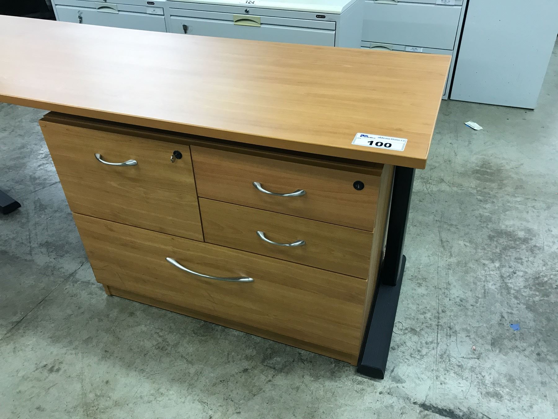 LIGHT CHERRY 8' X 7.5' ELECTRIC ADJUSTABLE HEIGHT EXECUTIVE DESK WITH 4 DRAWER MULTI-FILE