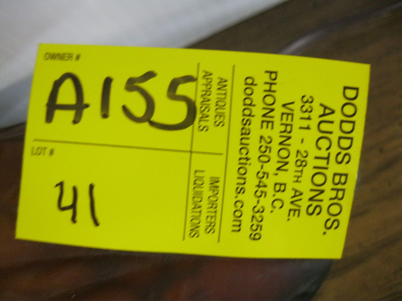 Attendance at the auction preview, or removal of purchased lots by purchaser/bidders and guests is done at their sole risk. Dodds Auction assumes no risk or liability, statutory, common law or otherwise whatsoever for the safety of those attending at the auction premises.
