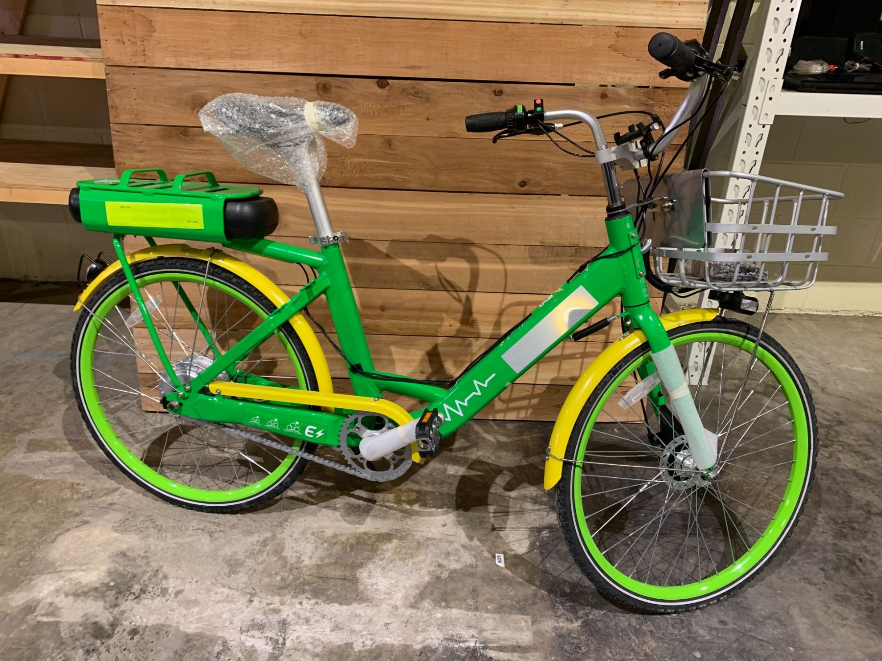 LIME GREEN & YELLOW E-BIKE WITH BATTERY, KEY & CHARGER