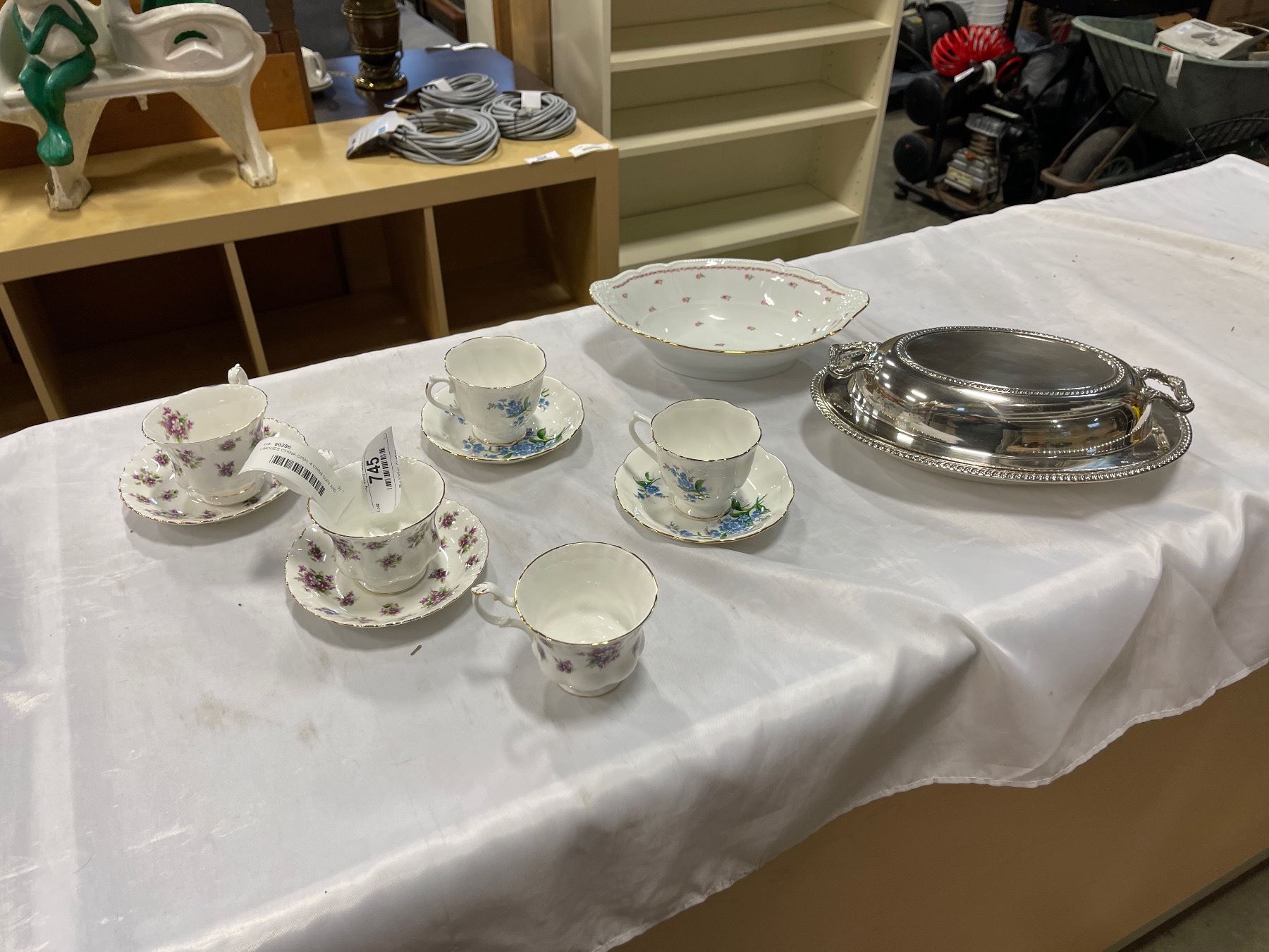 LIMOGES CHINA DISH, 4 CHINA CUPS AND SAUCERS