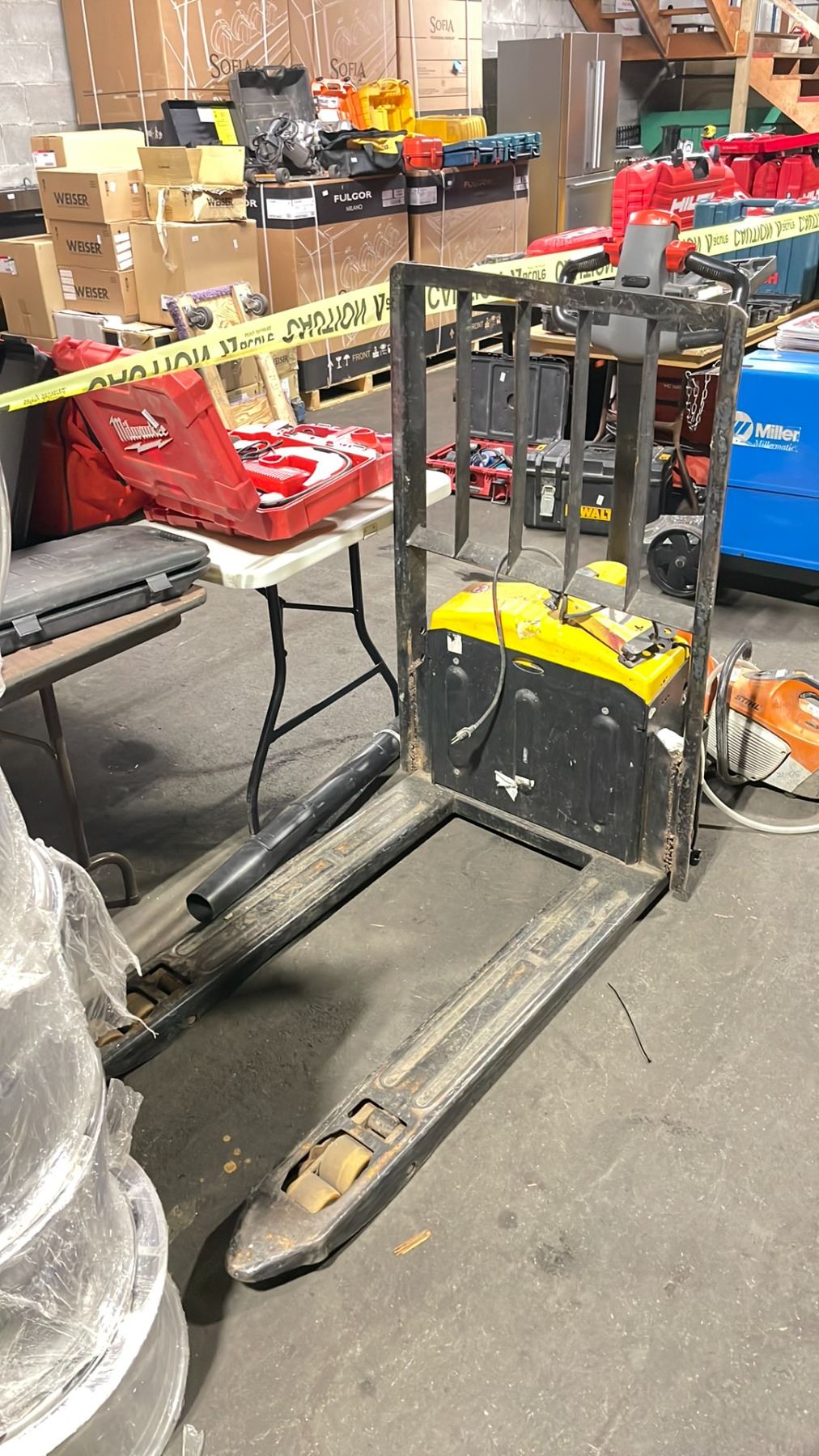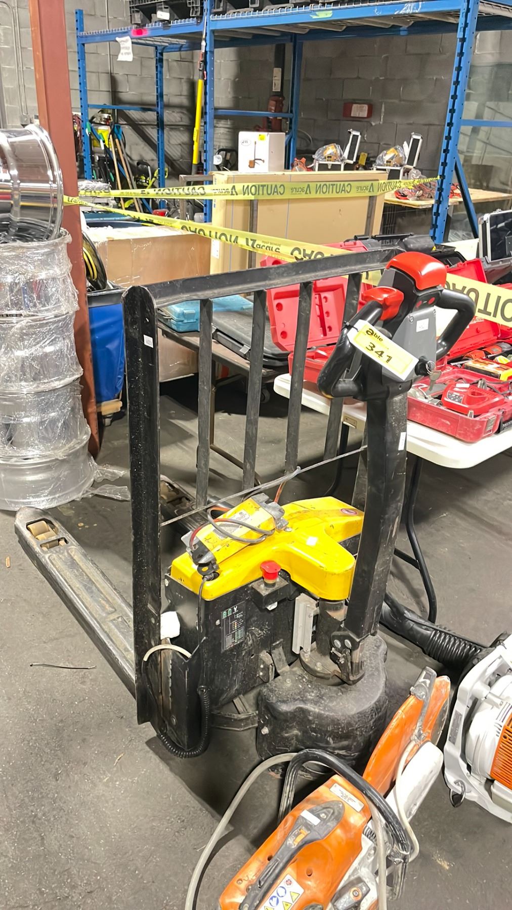 LIUGONG MT4116577 YELLOW 3,300 LBS CAPACITY INDUSTRIAL ELECTRIC WALK BEHIND PALLET MOVER WITH KEYS & CHARGER