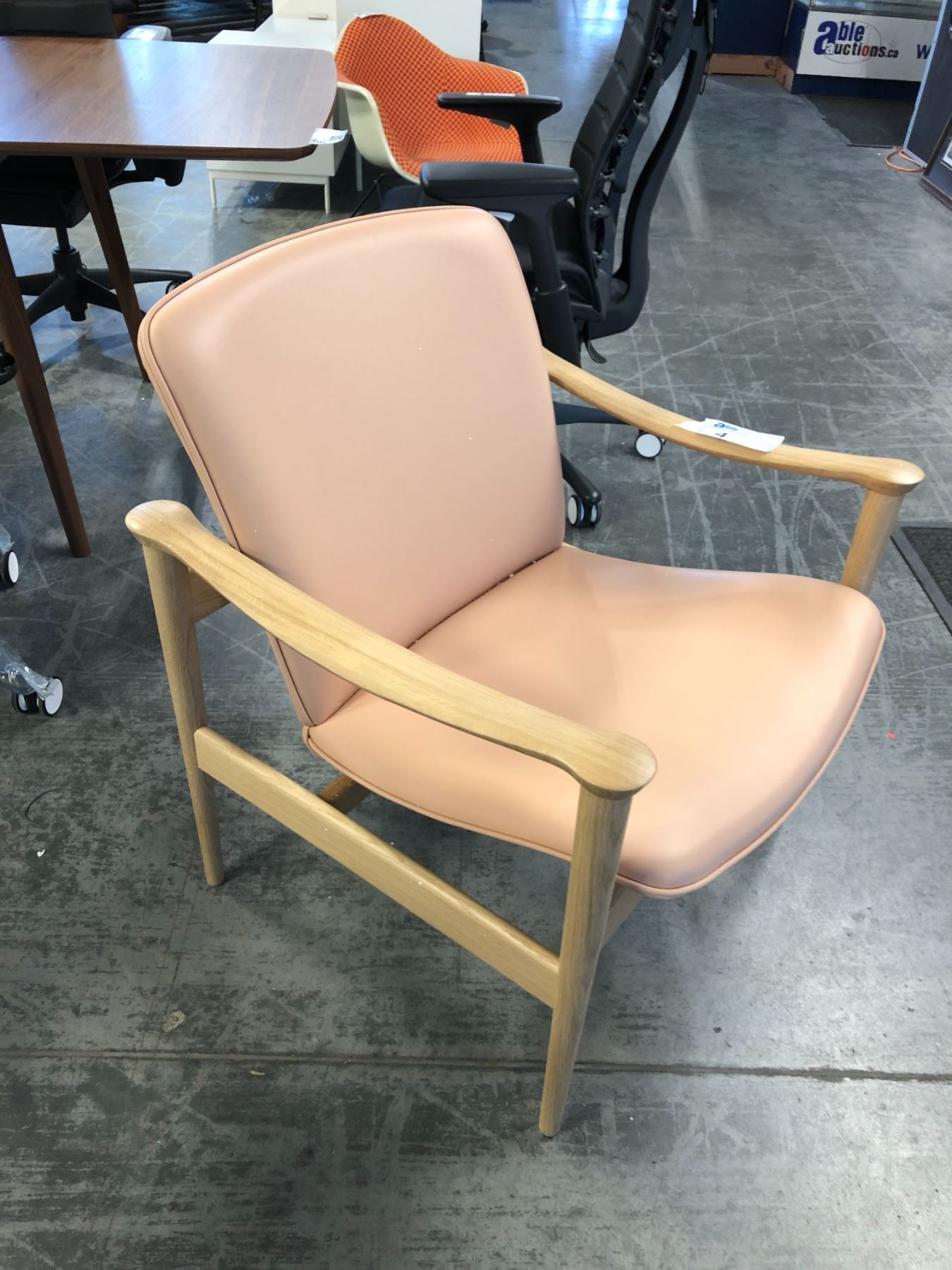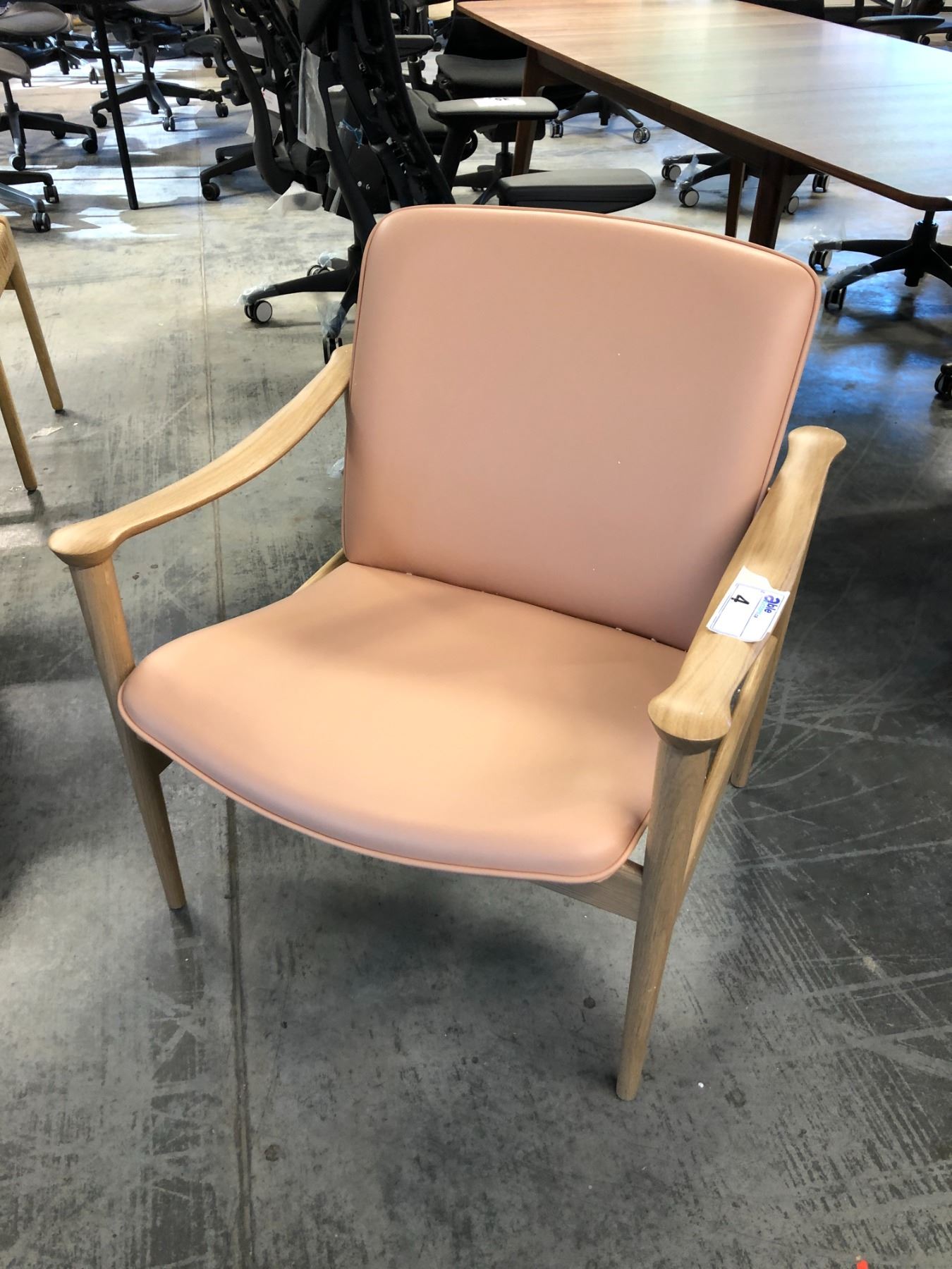 LK HJELLE MODEL 711 CORIANDER/OAK LOUNGE CHAIR, RETAIL VALUE $5,530.00 CAD