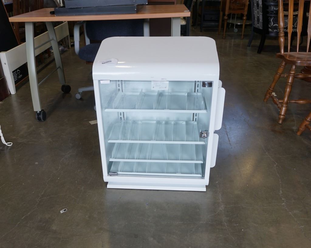 LOCKING GLASS DOOR AND METAL CABINET WITH BOTH KEYS