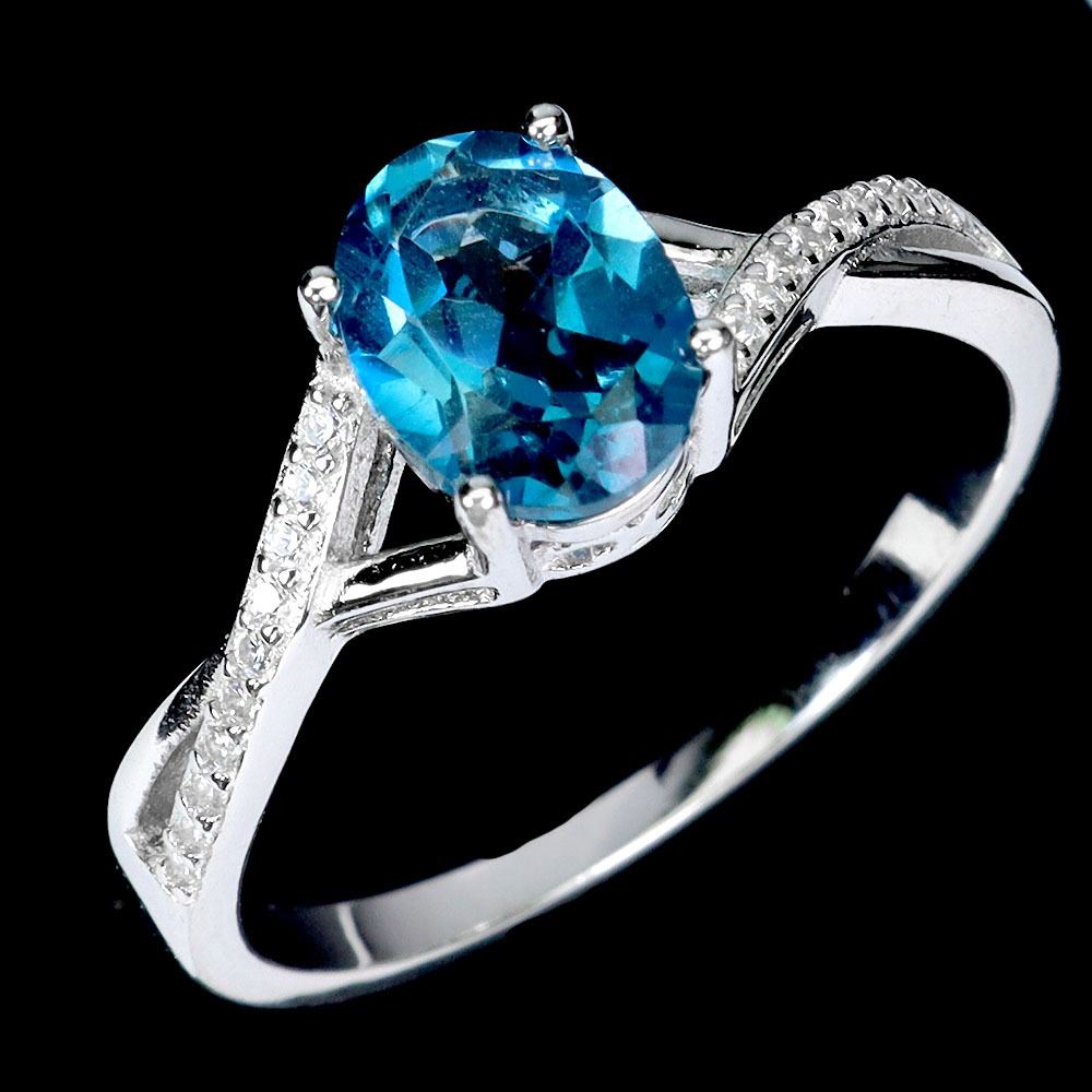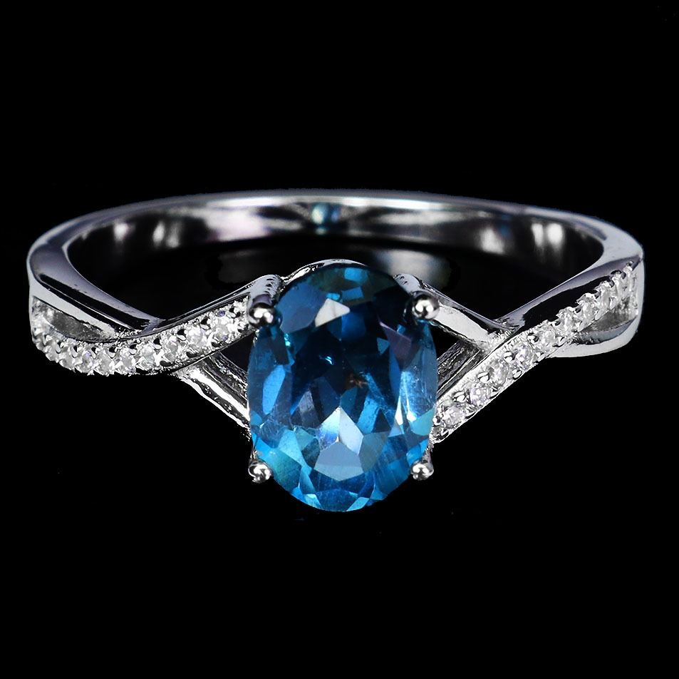 LONDON BLUE TOPAZ RING IN 14K WHITE PLATED GOLD OVER 925 STERLING SILVER - SIZE 7 - APPRAISED REPLACEMENT VALUE