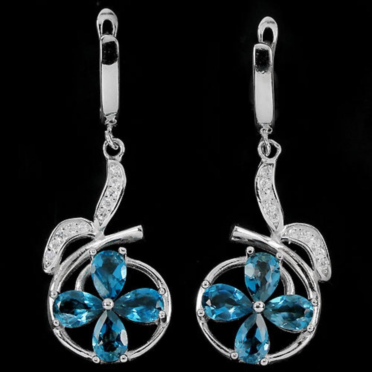 GENUINE LONDON BLUE TOPAZ WHITE CZ 925 SILVER EARRING 14K WHITE GOLD COATING; STONE SHAPEPEAR PORTUGUESE CUTSTONE DIMENSION6 X 4 MM.MAIN STONE WEIGHT2 CARATCOLORLONDON BLUECLARITYIF TO VVSLUSTERENCHANTINGTREATMENTIRRADIATIONORIGIN OF STONEAFRICAHARDNESS8OTHERFACE OF EARRING 32 X 15 MM. WHITE CUBIC ZIRCONIA 1 MM. TOTAL 3 G.