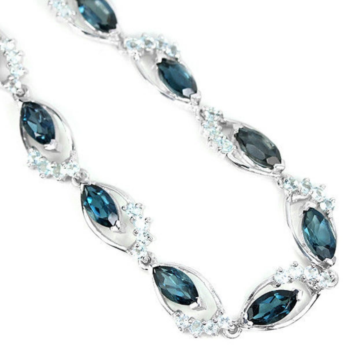 GENUINE AAA LONDON SKY BLUE TOPAZ 925 SILVER BRACELET 14K WHITE GOLD COATING; LENGTH OF ITEM (Inch.) 7.25 ; ITEM QUANTITY -1; STONE SHAPE -MARQUISE ROUND; STONE DIMENSION -8 X 4 MM. , 2 MM. ITEM WEIGHT -11.9 GRAM; COLOR -LONDON BLUE SKY BLUE; CLARITY -IF TO VVS; LUSTER -ENCHANTING; TREATMENT -IRRADIATION; ORIGIN OF STONE -AFRICA; HARDNESS -8;;