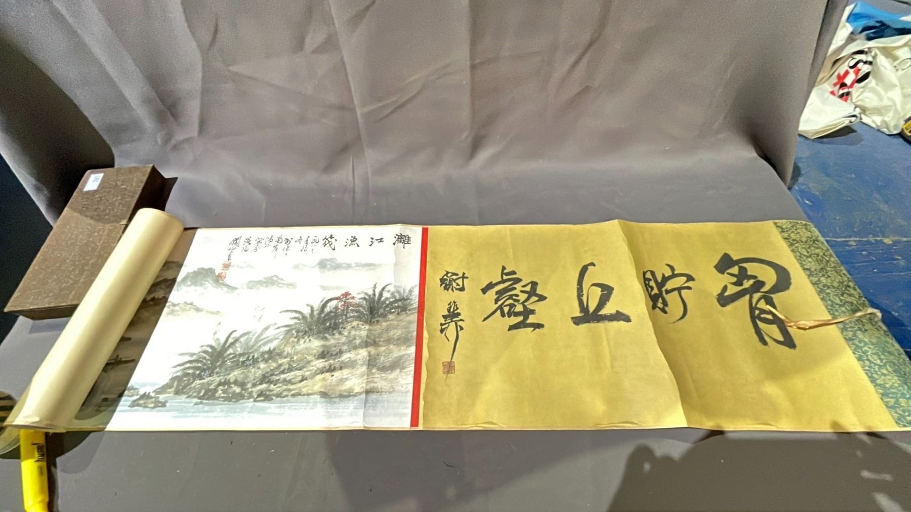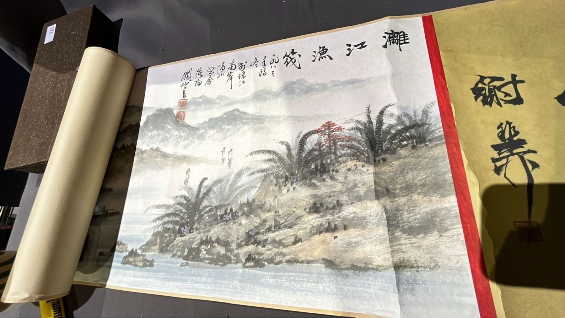 LONG SCROLL OF MOUNTAIN LANDSCAPE WITH NOTES