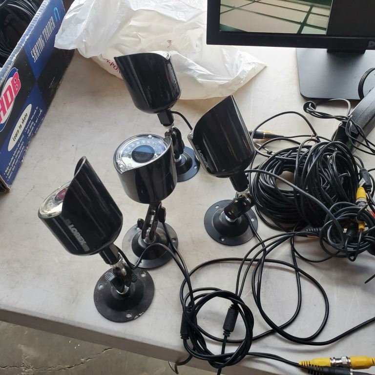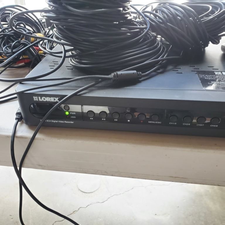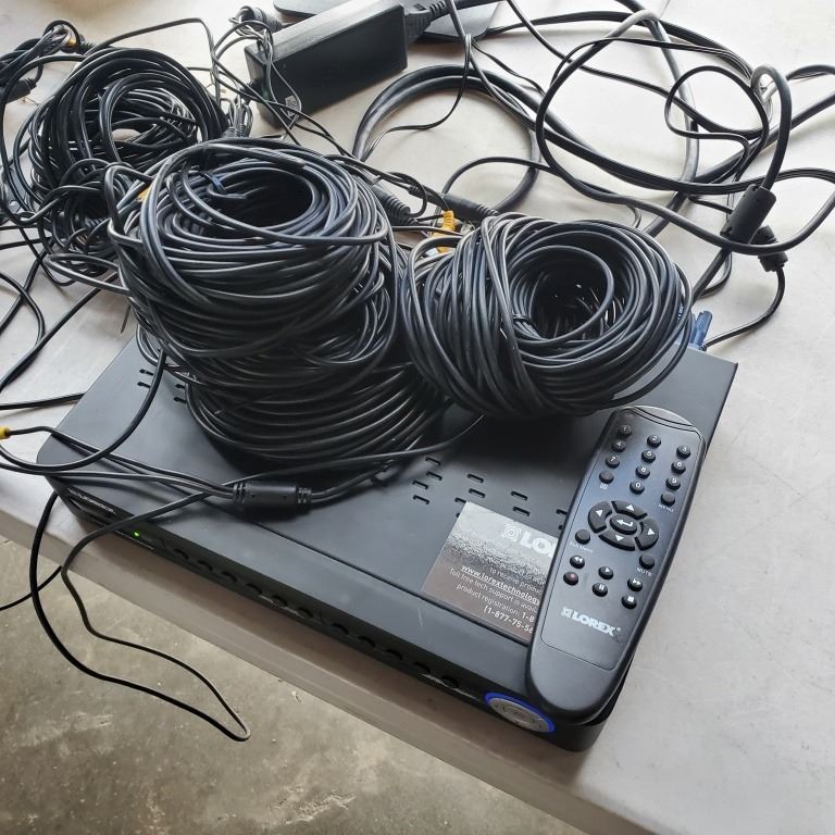 LOREX 8 CHANNEL DVR WITH 4 CAMERAS, REMOTE AND WIRES, NO MONITOR