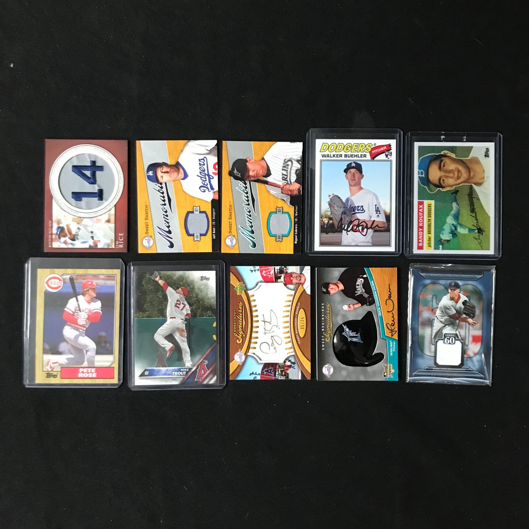 LOT OF 10 AUTOGRAPHED & GAME DAY MATERIALS BASEBALL CARDS