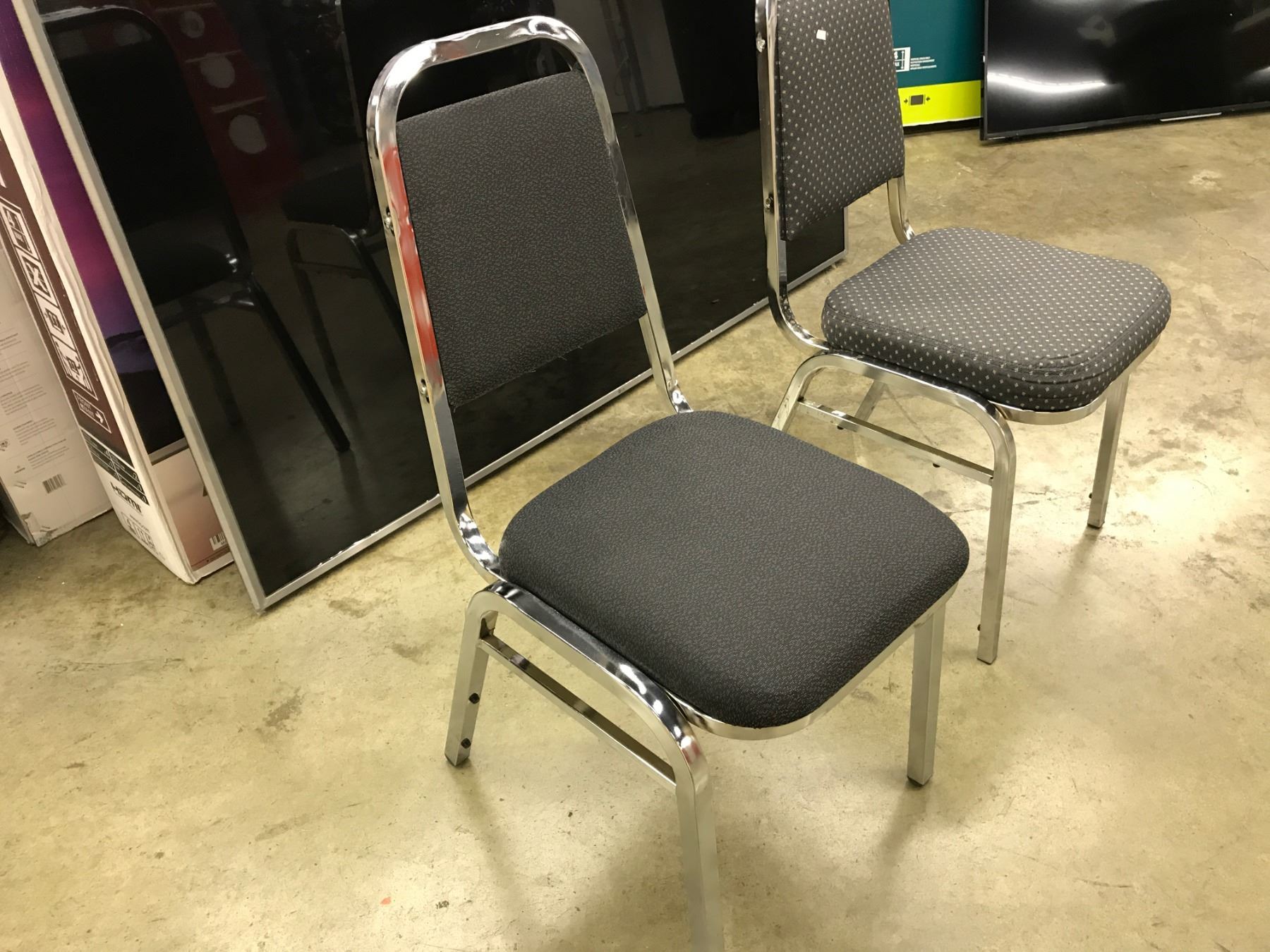 LOT OF 10X DARK GREY STACKING METAL FRAME CONFERENCE CHAIRS