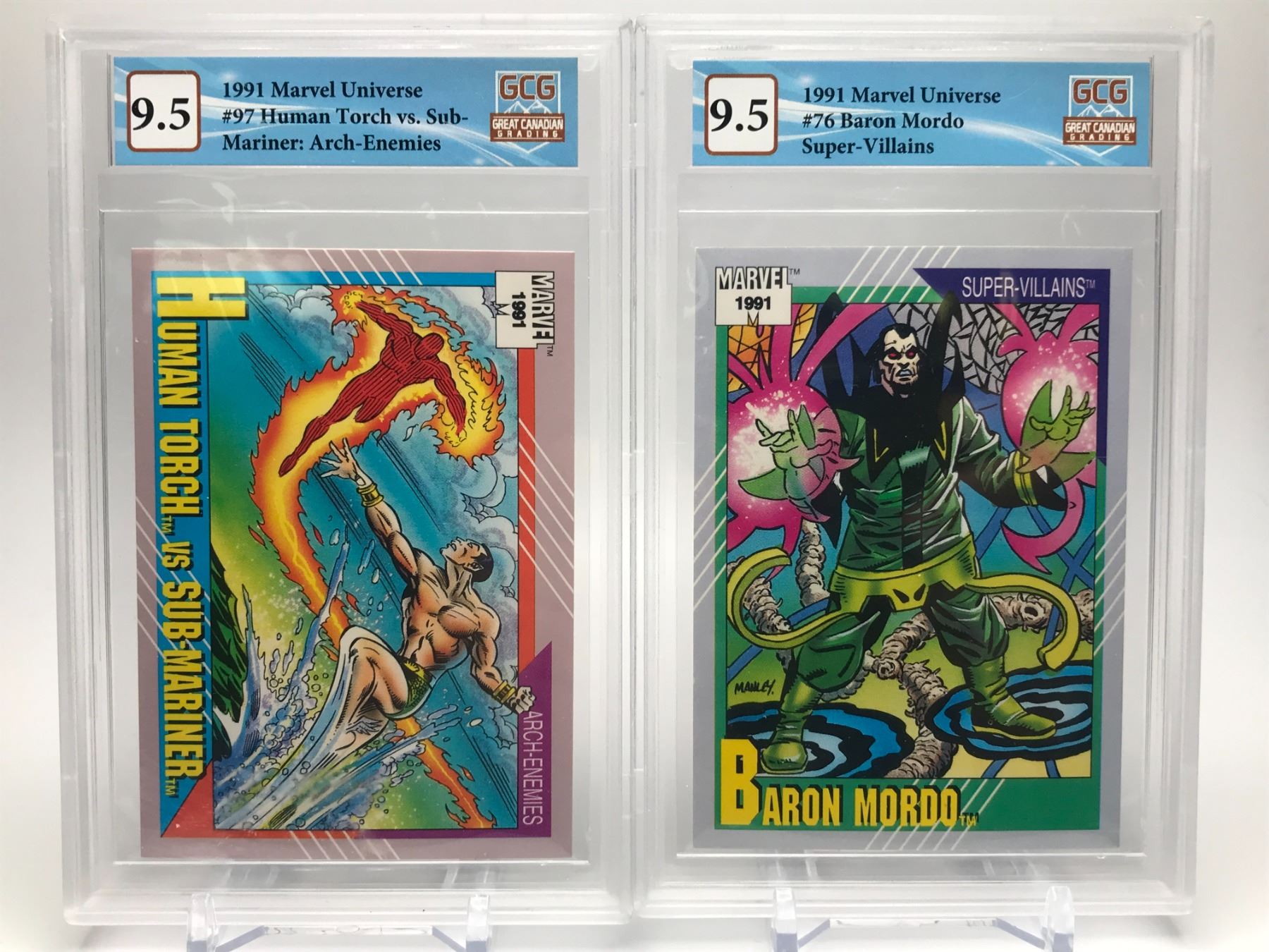 LOT OF 2 GRADED MARVEL UNIVERSE CARDS (HUMAN TORCH VS SUB MARINER/ BARON MORDO)