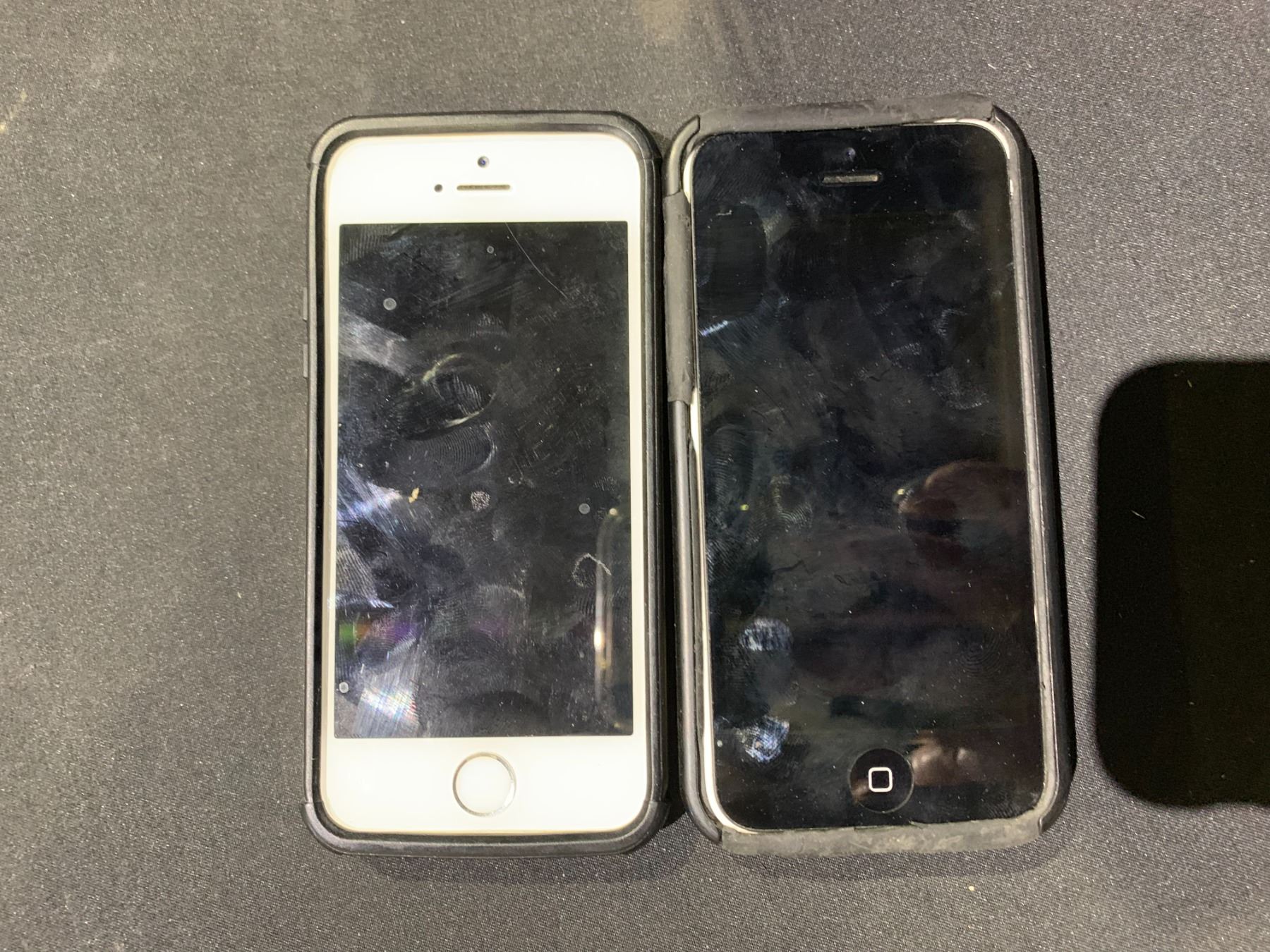 LOT OF 2 IPHONES, 1 IPHONE SE MODEL NUMBER A1723, 1 IPHONE 5C MODEL NUMBER A1532- NO POWER CORDS- WITH INCIPIO AND UAG CASES, WIPED AND WORKING ORDER