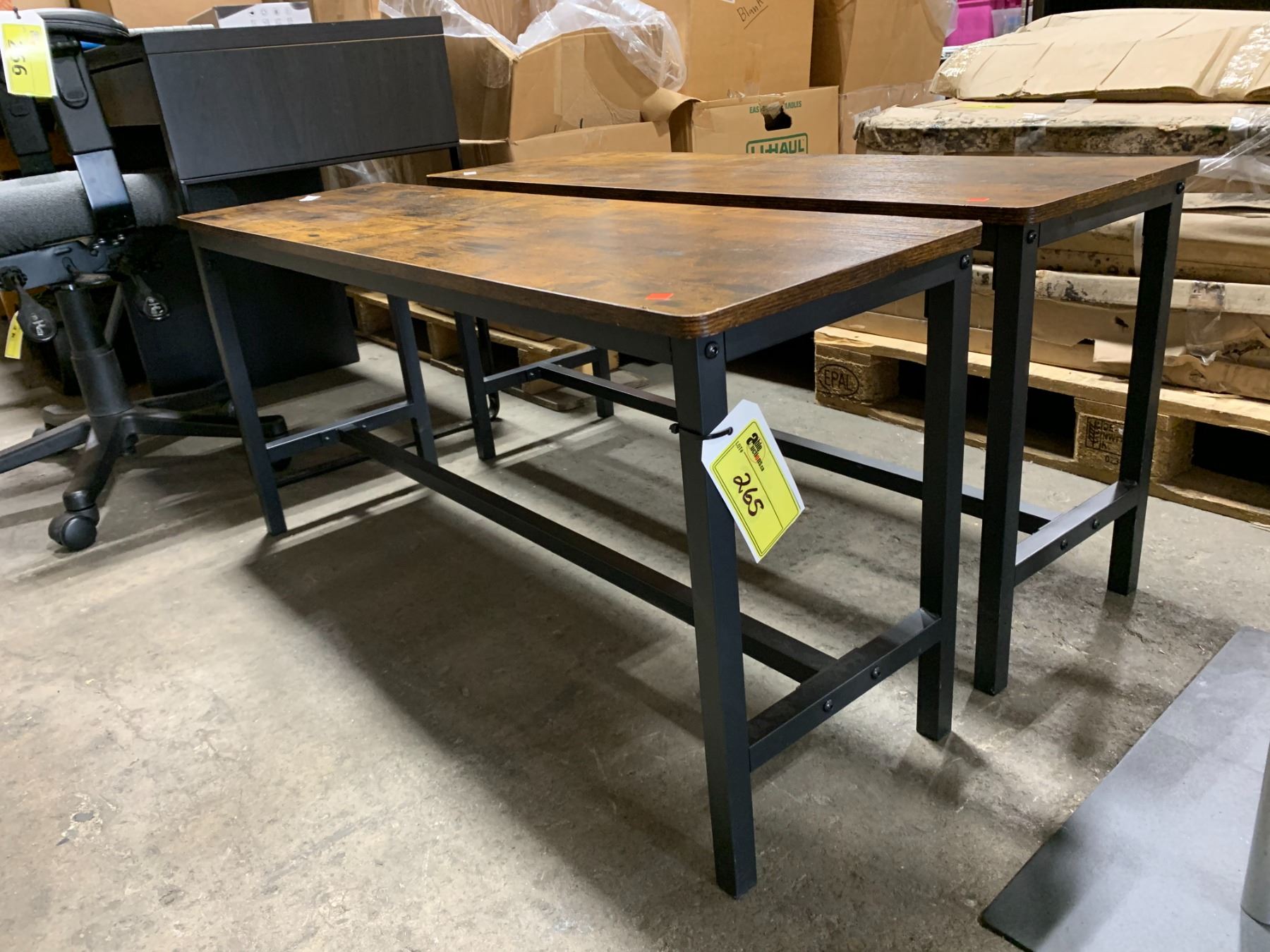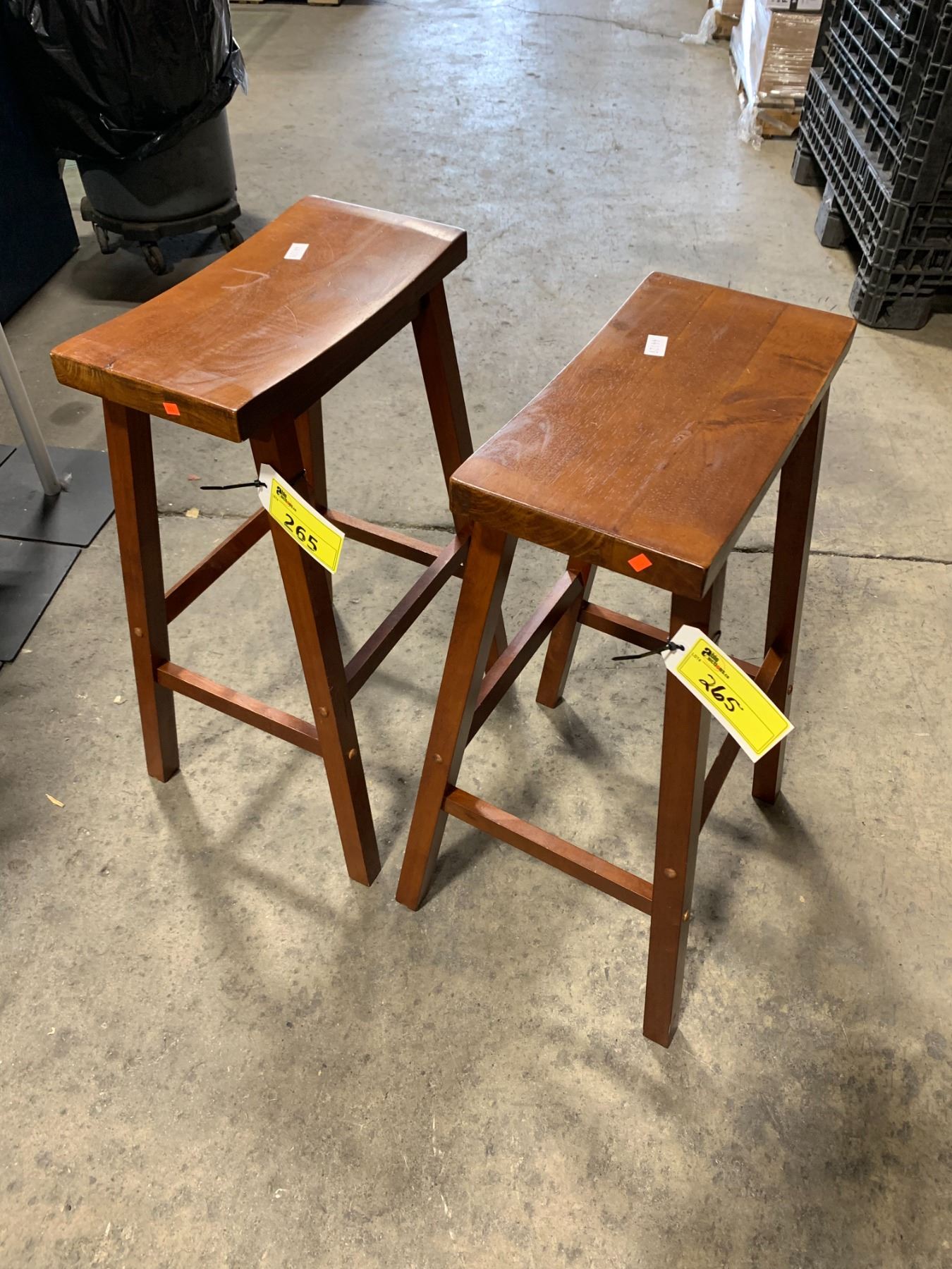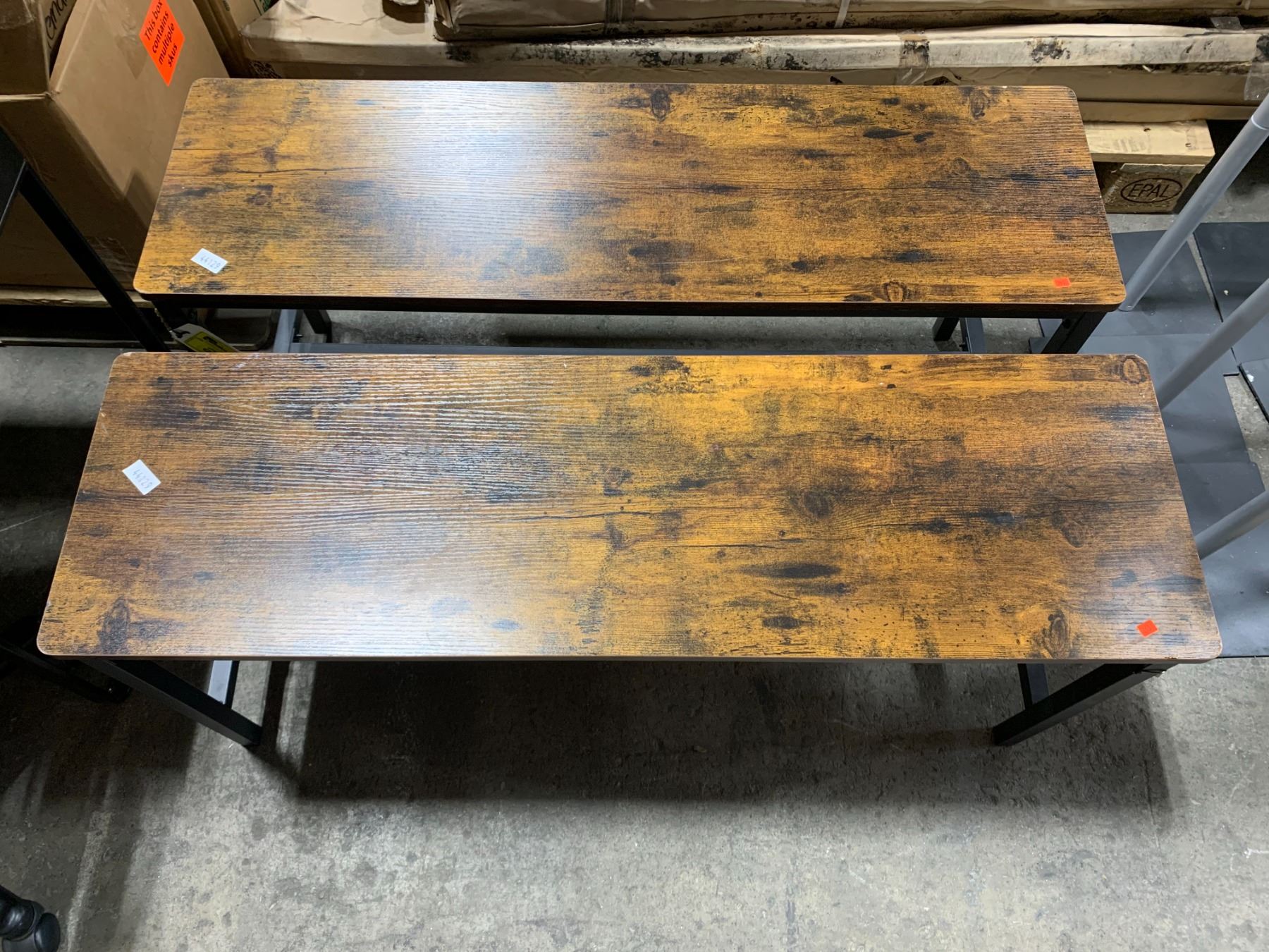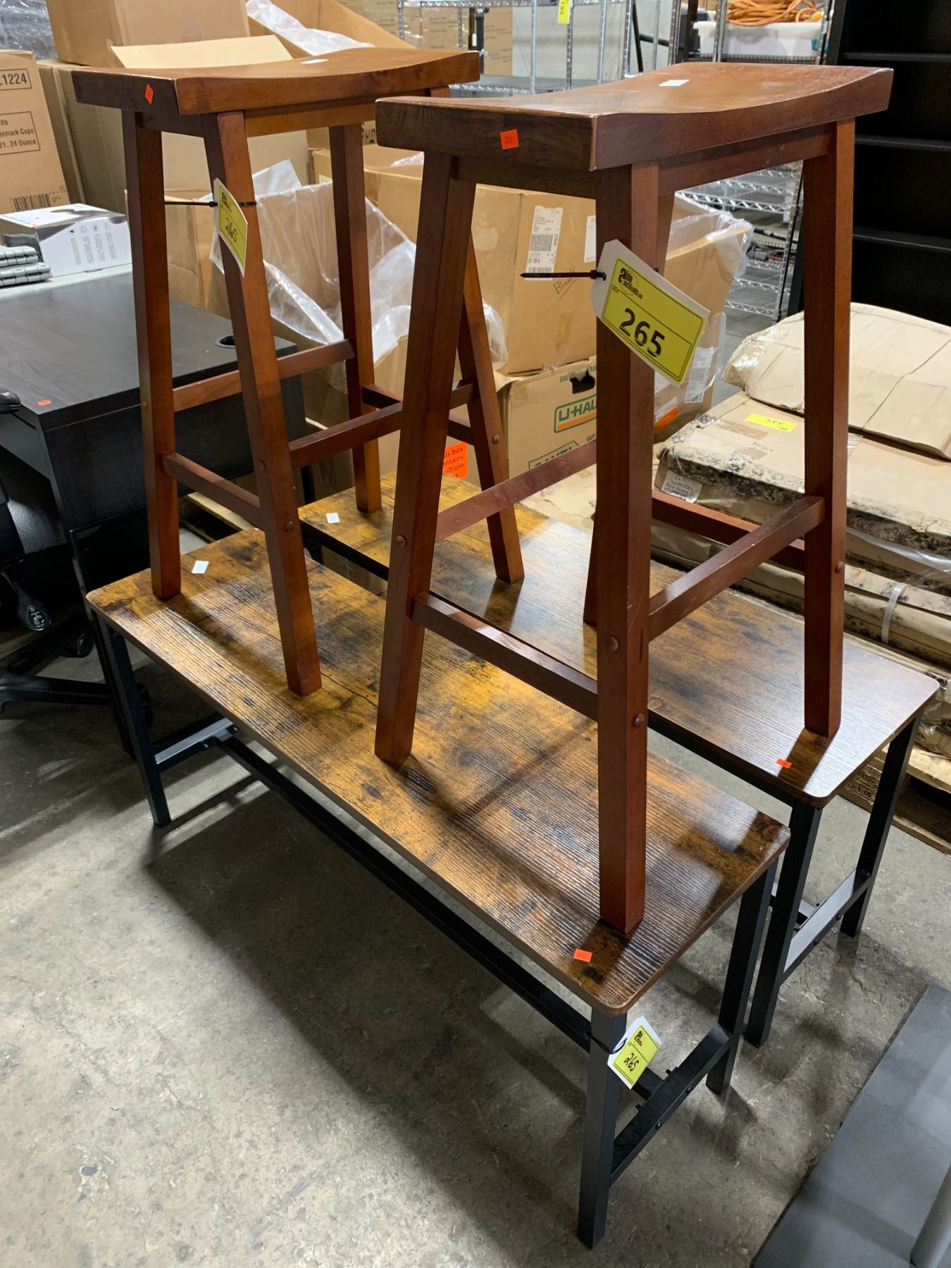 LOT OF 2 WOODEN STOOLS AND 2 WOODEN BENCHES WITH METAL LEGS