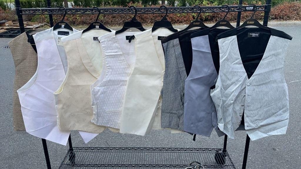 LOT OF 26 NEW BILL BLASS, BRACCI AND MARSHALL STEWART FORMAL VESTS SIZE XL