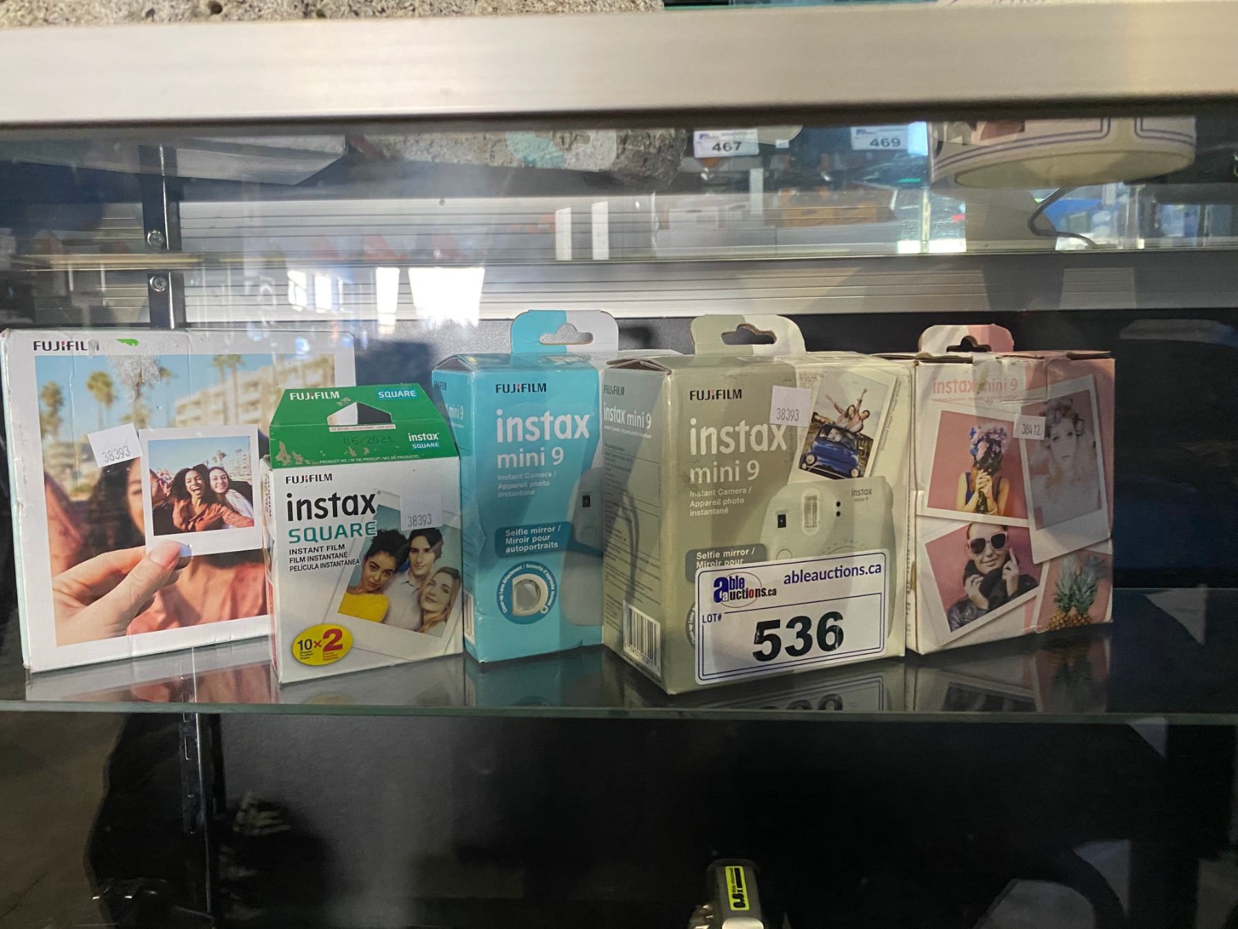 LOT OF 3 INTAX MINI CAMERAS, 1 INTAX SQUARE AND FILM
