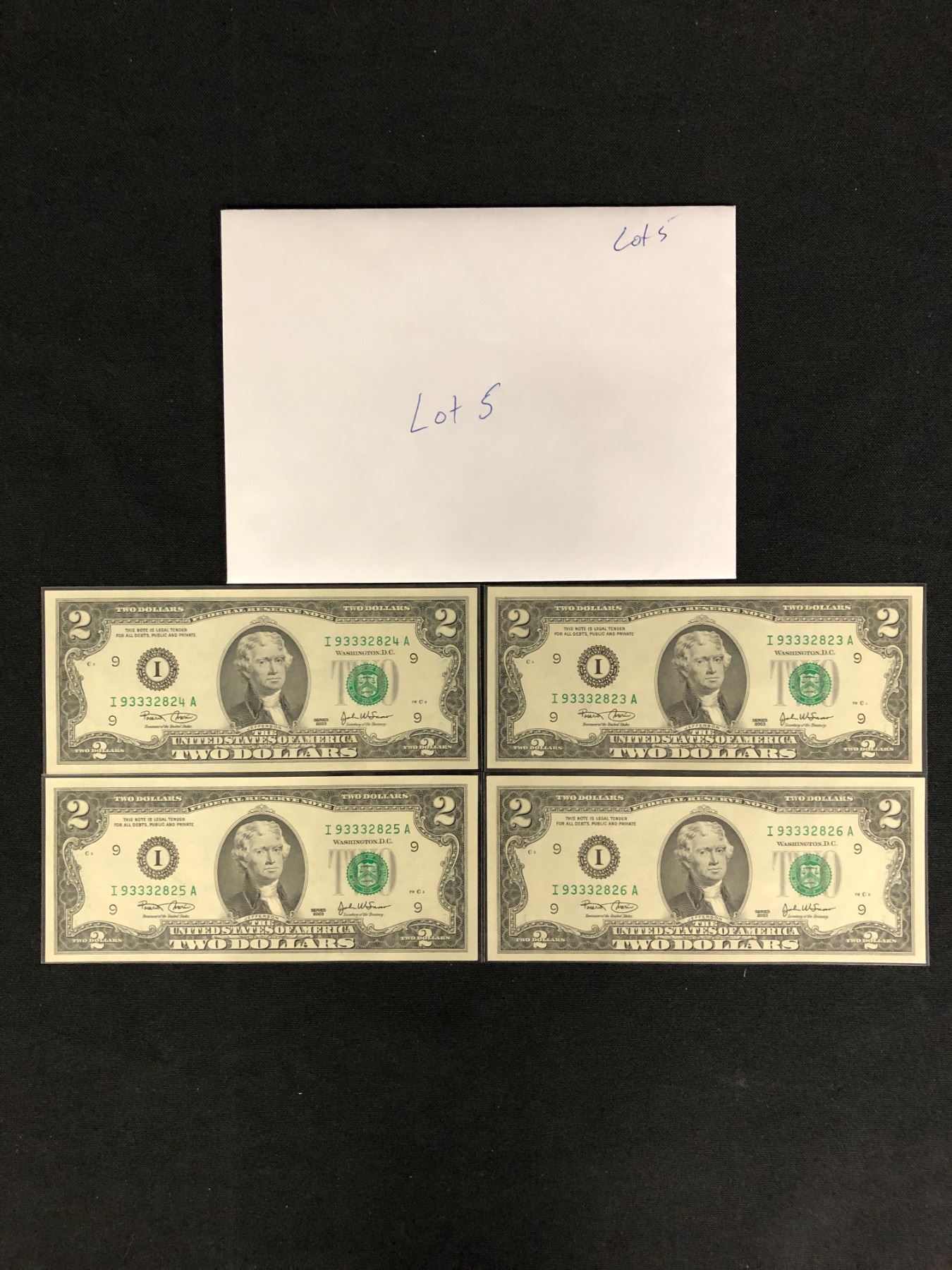LOT OF 4 MINT CONDITION USA SEQUENTIAL $2 BILLS [LOT 5]