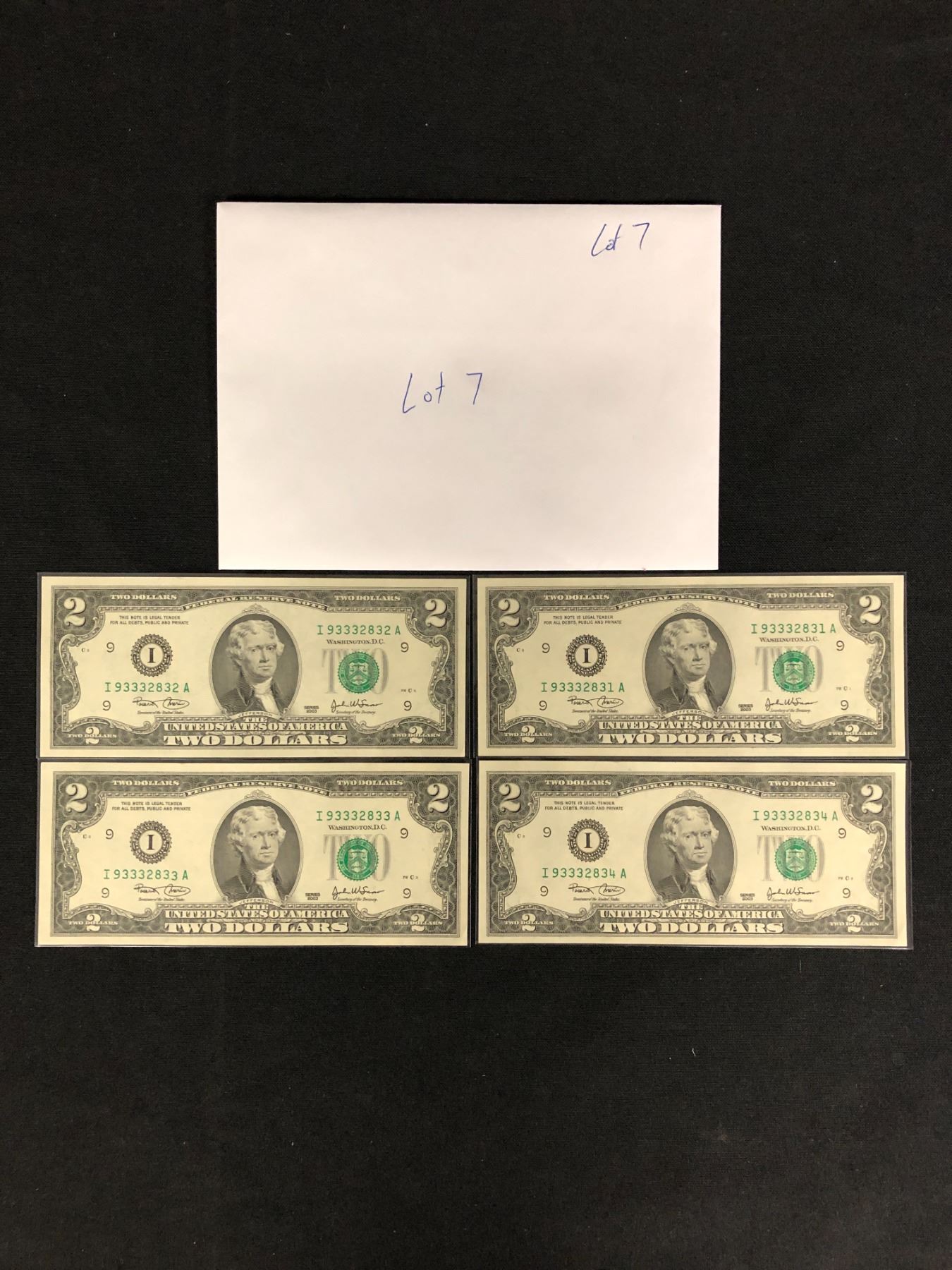 LOT OF 4 MINT CONDITION USA SEQUENTIAL $2 BILLS [LOT 7]