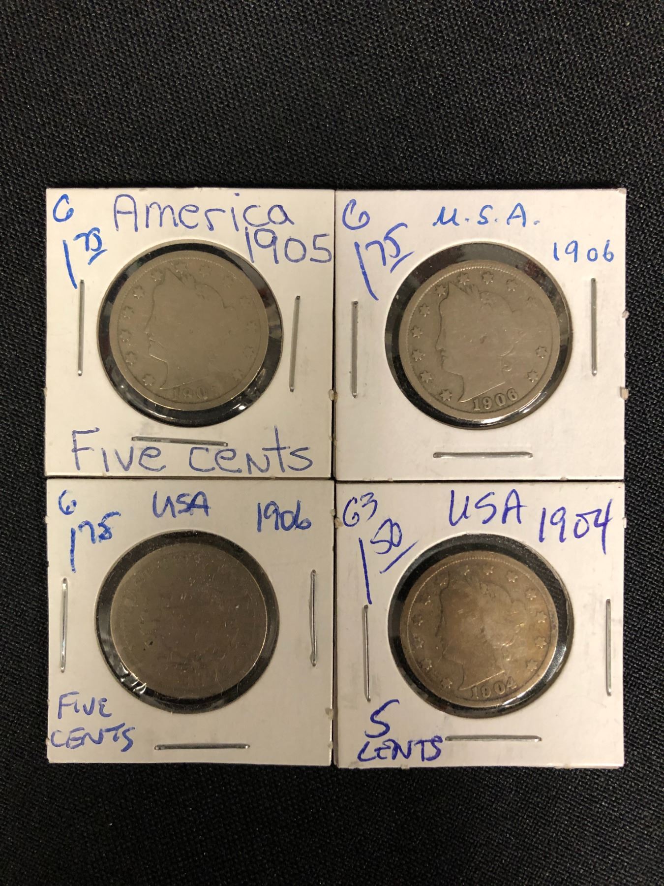 LOT OF 4 USA LIBERTY  FIVE CENTS
