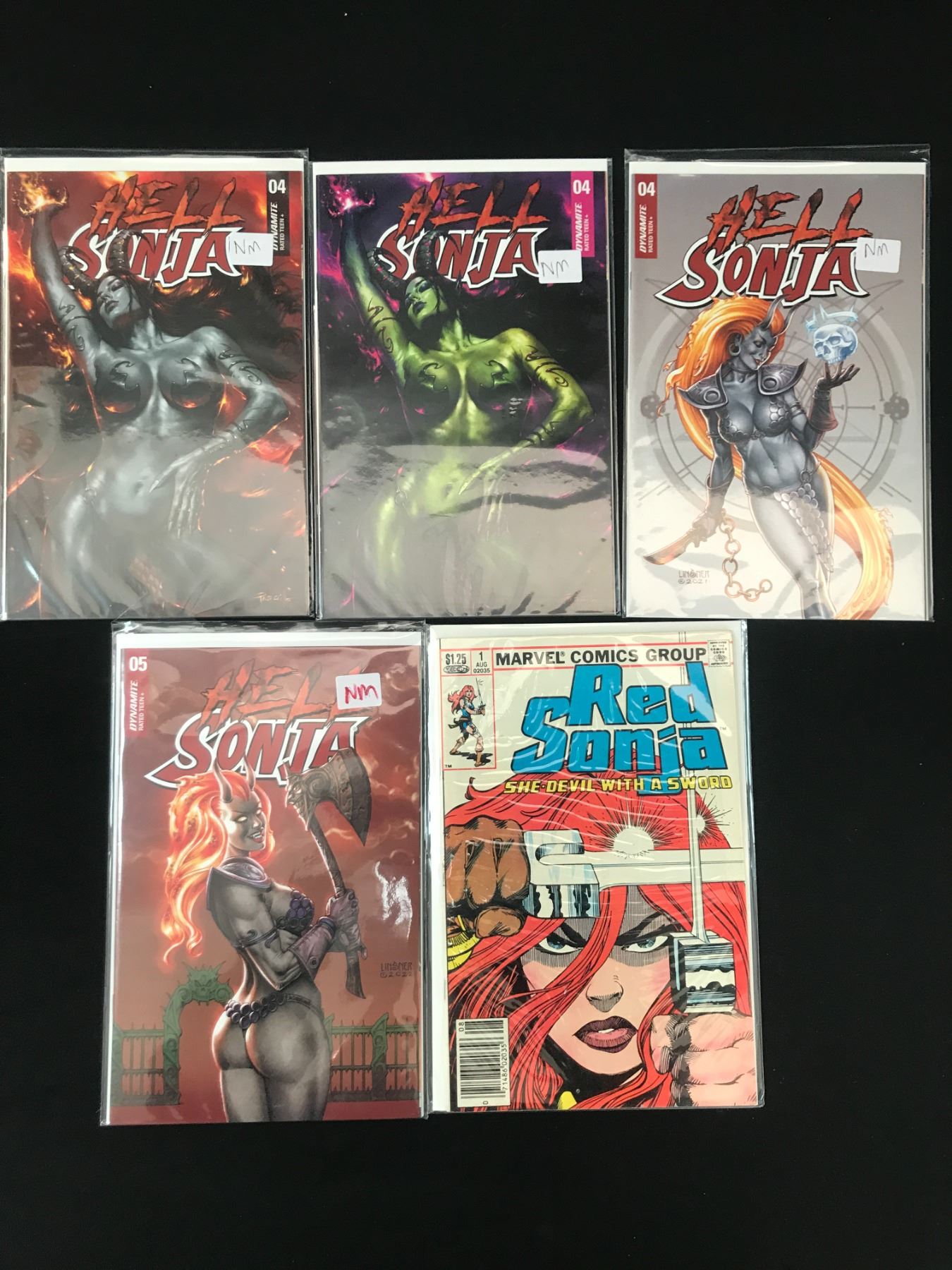 LOT OF 5 COMICS - 4 HELL SONJA COMICS AND 1 RED SONJA