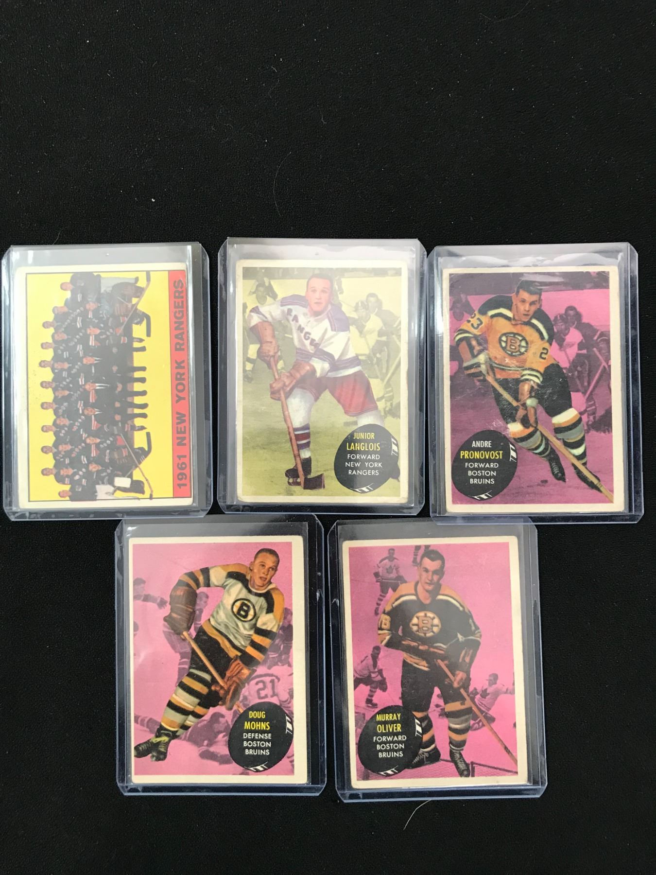 LOT OF 5 VINTAGE 1960 BOSTON BRUINS/RANGERS HOCKEY CARDS