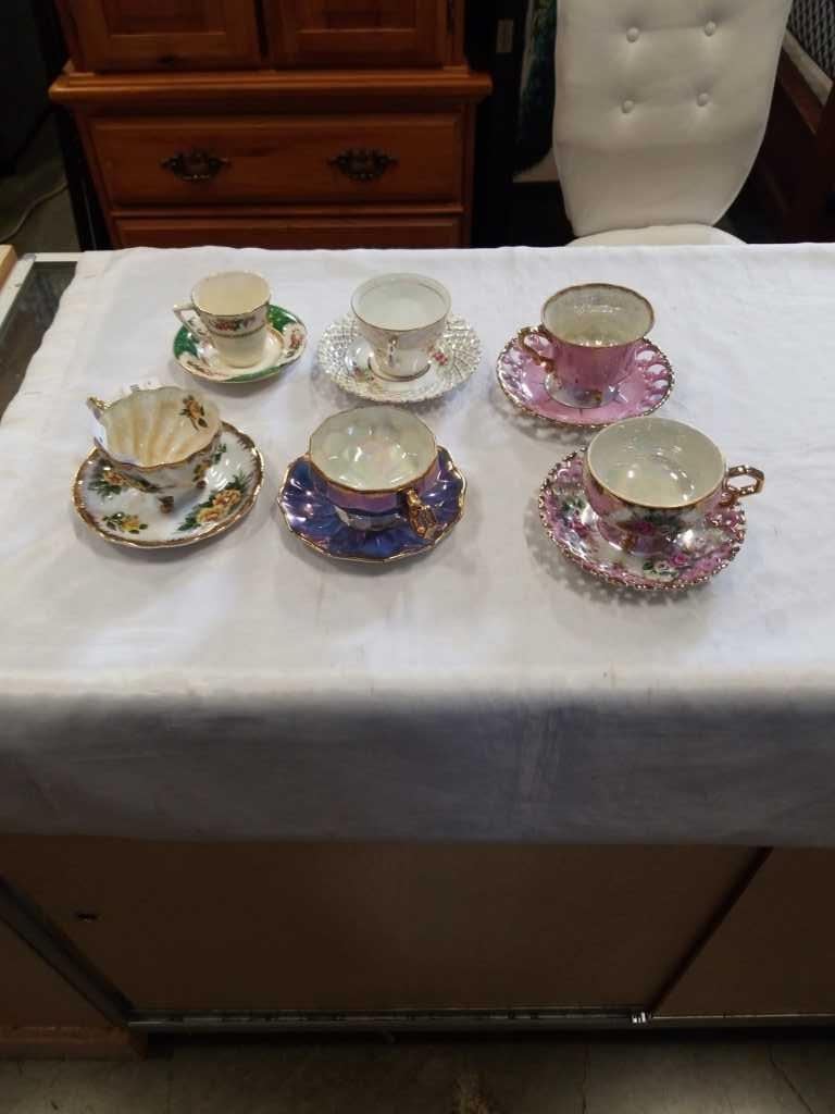LOT OF 6 ANTIQUE CUP AND SAUCER SETS
