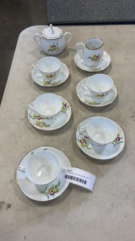 LOT OF 6 TEACUPS AND SAUCERS WITH CREAM AND SUGAR