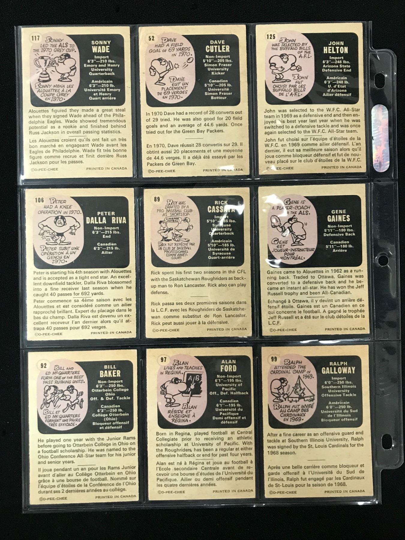 LOT OF 9 1971 O-PEE-CHEE CFL STAR CARDS