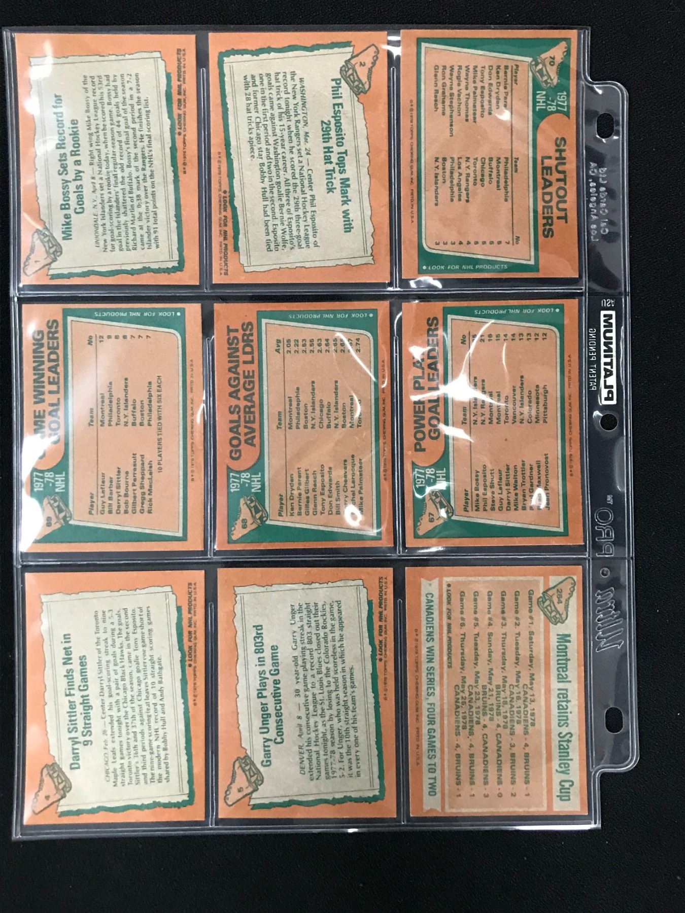 LOT OF 9 1978 TOPPS HOF NHL STAR CARDS