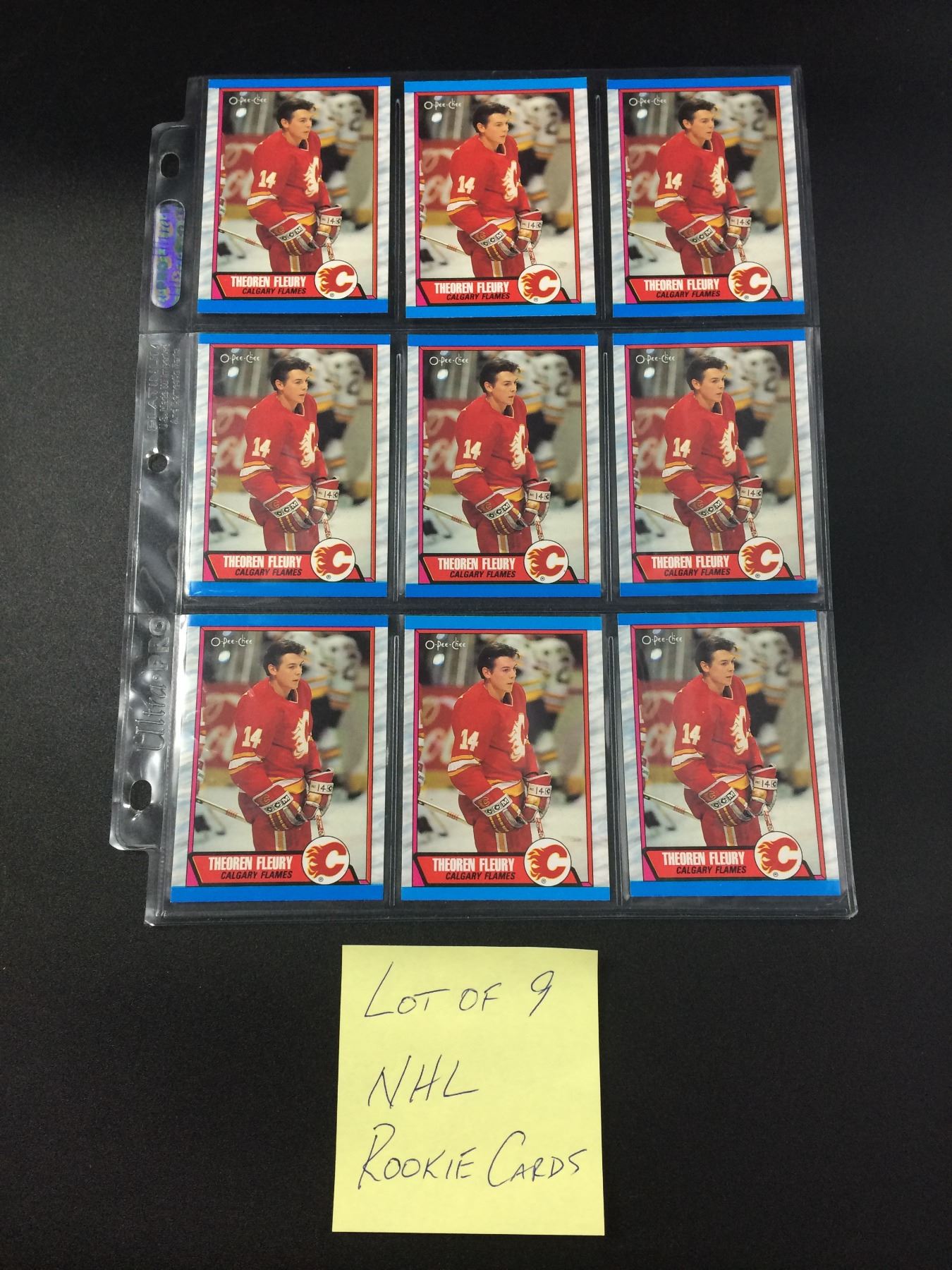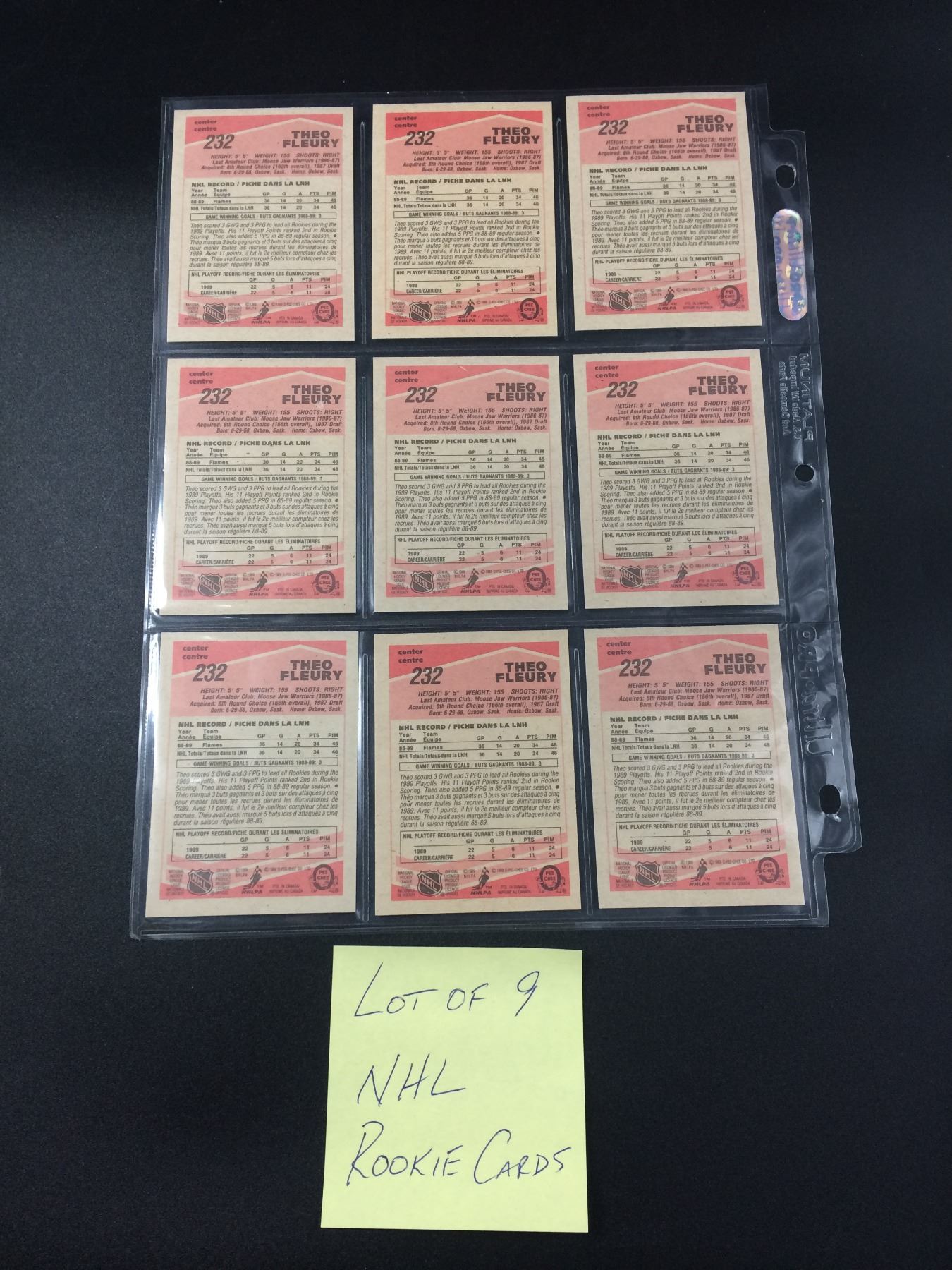 LOT OF 9 THEOREN FLEURY NHL ROOKIE CARDS
